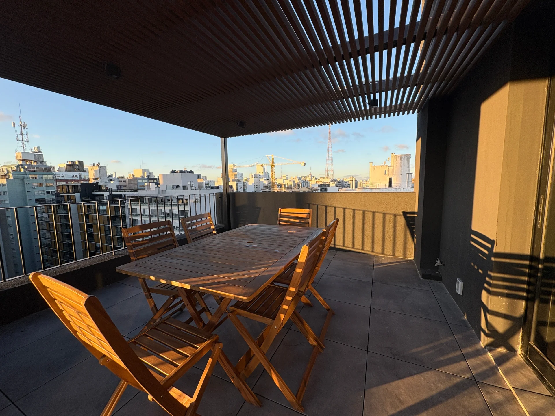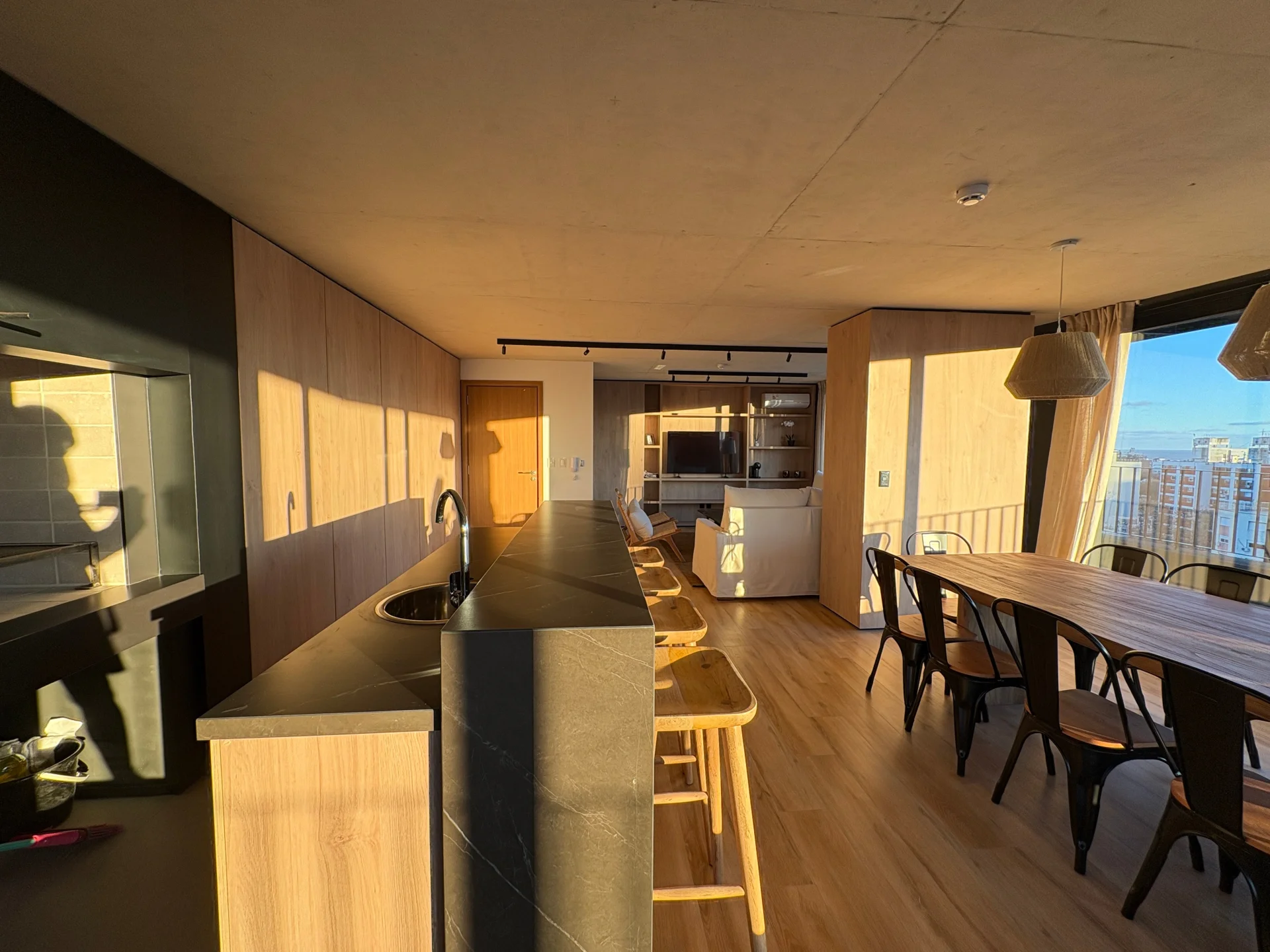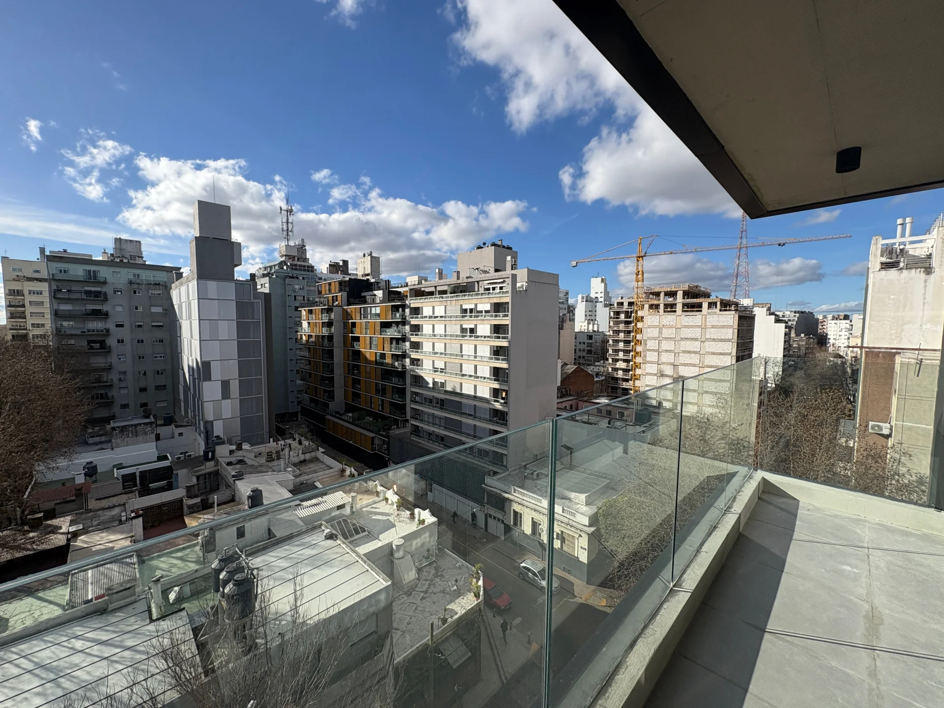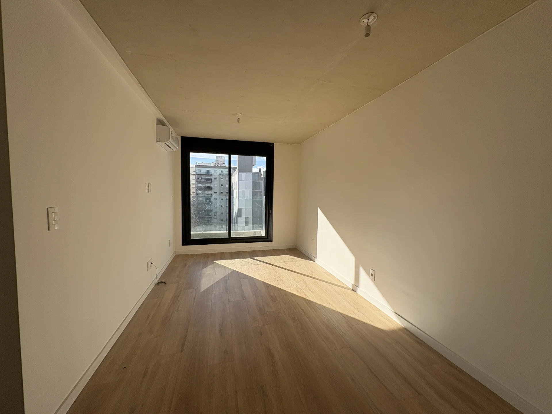 Octavo piso al frente con orientación Norte. Living comedor con balcón, cocina integrada separada por mesada, equipada con horno, anafe y campana. Cómodo dormitorio con aire acondicionado y salida al balcón. Placard con instalación para calefón y lavarropa. Cerradura digital para acceder a la unidad.