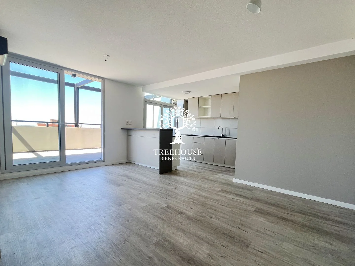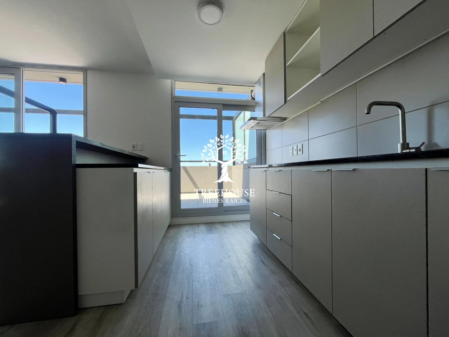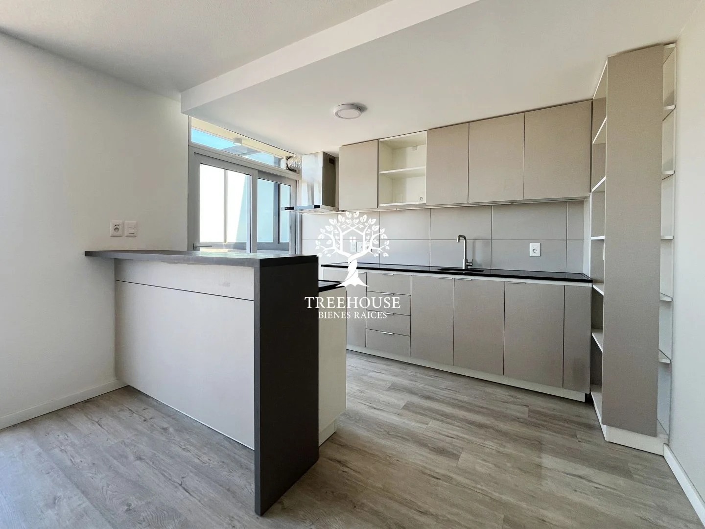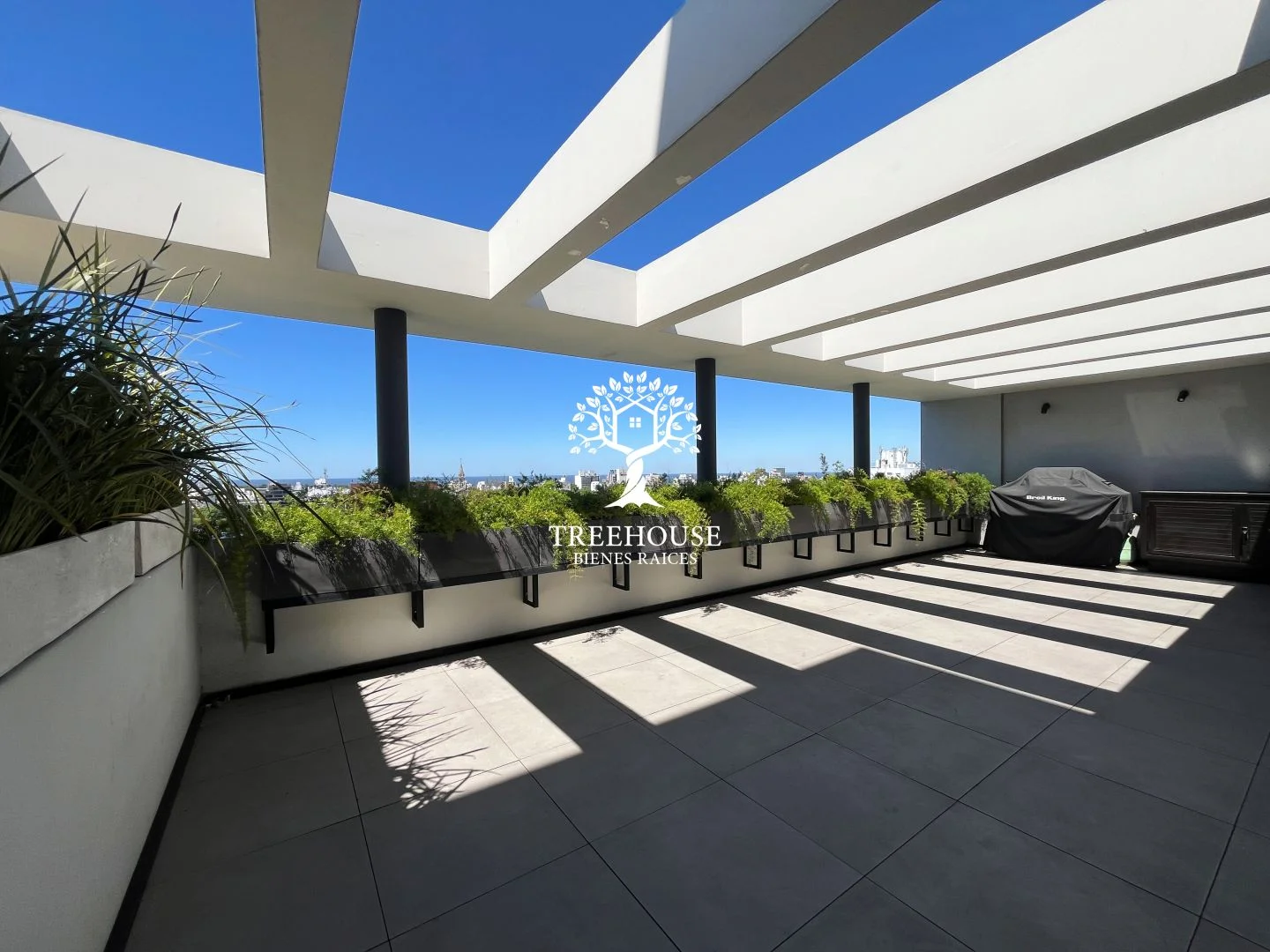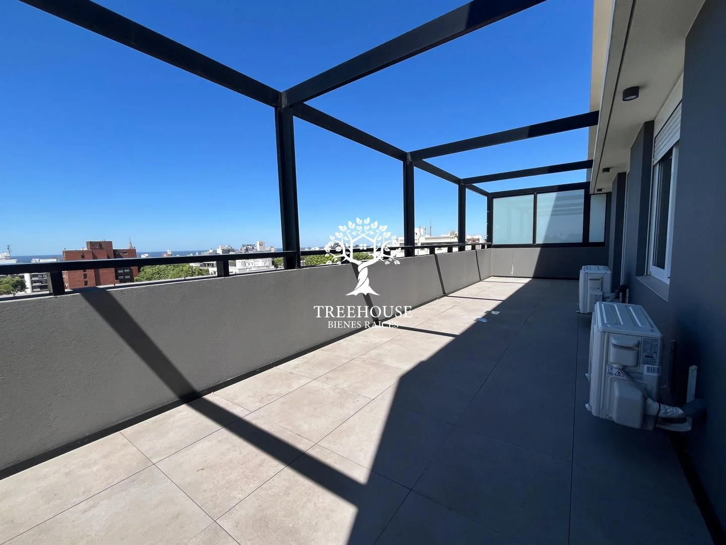 Al ingreso nos recibe un amplio living comedor con salida a una amplia terraza de 30m2 con excelentes vistas. Cocina semi integrada con barra desayunadora y doble mesada, placares sobre y bajo mesada con excelente espacio de guardado. Dos dormitorios uno de ellos con placard y salida a la terraza y baño completo. Además cuenta con dos unidades de cocheras dentro del edificio.