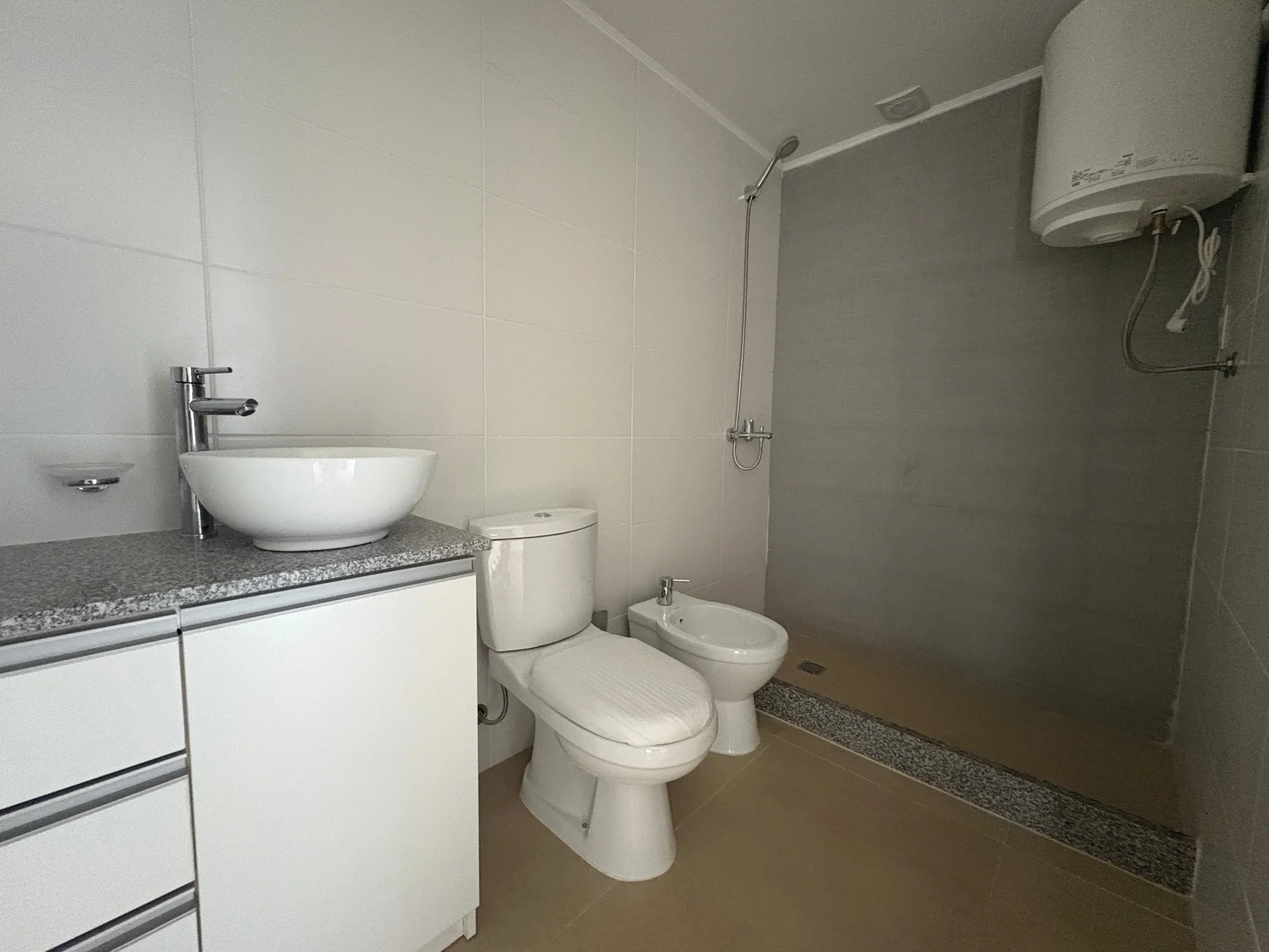 Amplio y luminoso dormitorio al frente con cómodo placar, baño completo con termo tanque instalado. Hay una puerta corrediza que separa la sala del dormitorio y baño lo cual le da mas privacidad. Garaje muy amplio y de fácil acceso en planta baja.