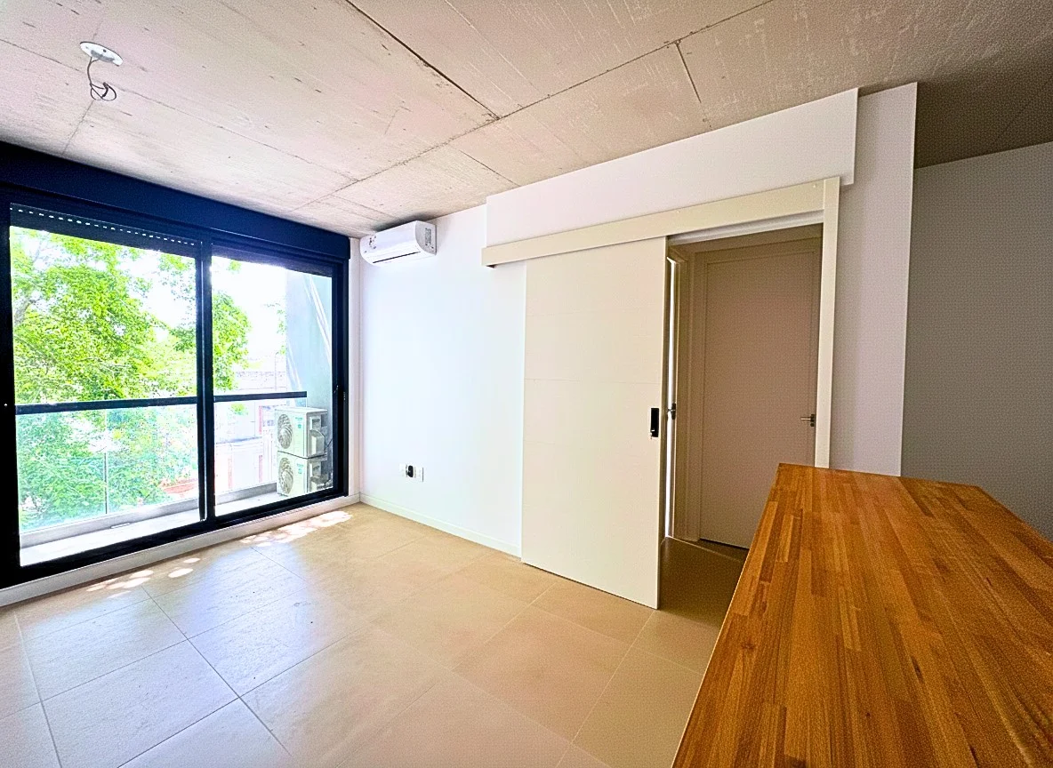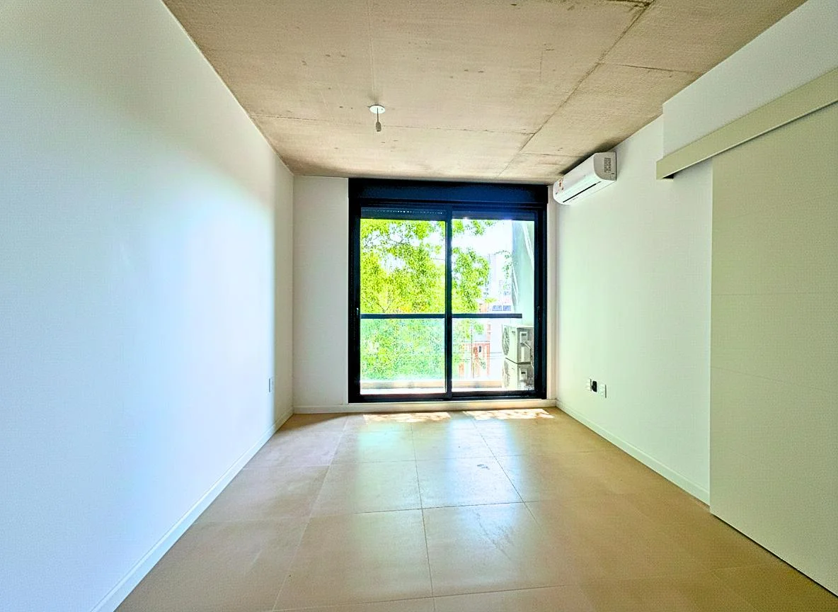Apartamento al frente con orientación oeste. Cuenta con un hall recibidor, living comedor de amplio con split de Aire Acondicionado frio/calor salida a terraza balcón y cocina semi integrada con barra equipada con horno empotrado, anafe vitro cerámico, campana extractora en acero inoxidable, placares con muy buena capacidad de guardado bajo mesada y aéreo.