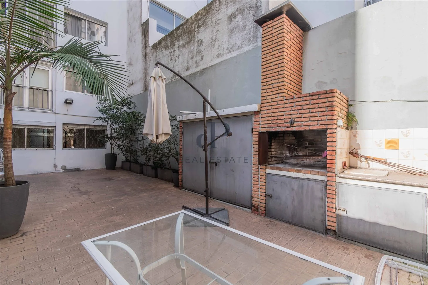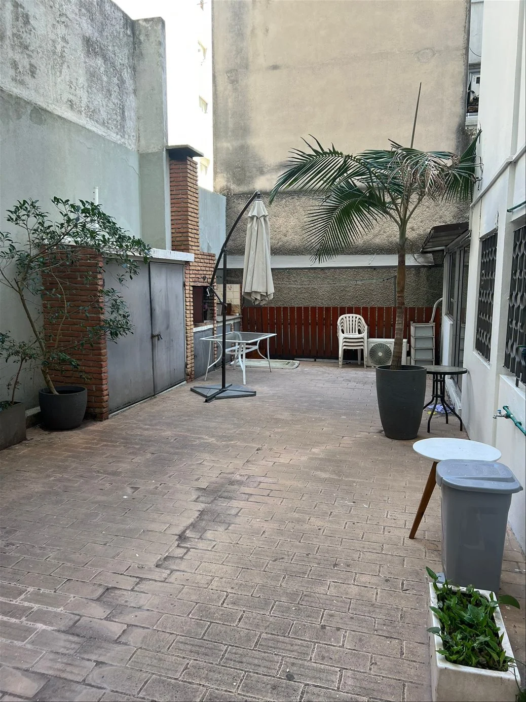 Gran patio con parrillero ideal para reuniones al aire libre