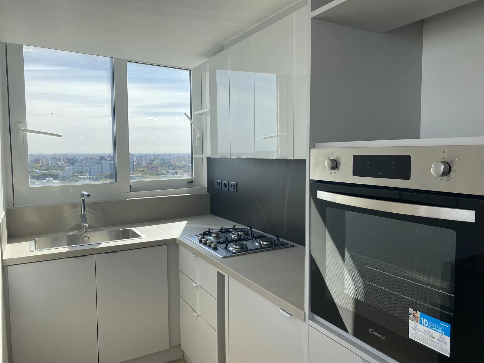 Apartamento premium de 3 dormitorios en el piso 25, con vista despejada sobre Bvar. Artigas, equipado con horno, anafe y campana de extracción, muebles bajo y sobre mesada, lavavajillas y lavasecarropa. Pisos de porcelanato simil madera. Losa radiante por caldereta a gas sectorizada individual.