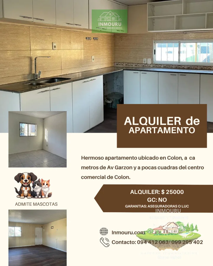 Apartamento en Colon - Montevideo (Cno Casavalle esquina Nuevo California) Excelente apartamento, 3 dormitorios y 2 baños (1 en suite). Primer piso por escalera. Lugar para un auto. Alquiler: $25000 Contrato por LUC o con garantía de aseguradoras. Admite mascotas. Consulte con nuestros asesores. Referencia Interna : Tera-2055