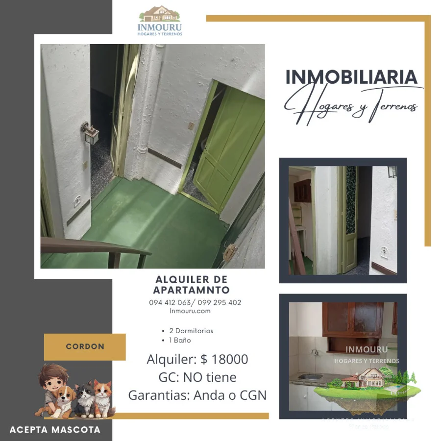 Apartamento en alquiler – Cordón, Montevideo Ubicación: Carlos Roxlo esquina Cerro Largo Características de la unidad: 2 dormitorios amplios 1 baño completo Cocina definida Living comedor luminoso Acepta mascotas Alquiler mensual: $18.000 Gastos comunes: No tiene Garantías aceptadas: ANDA o CGN Consulte con nuestros asesores y coordine su visita. Referencia Interna : Tera-2256