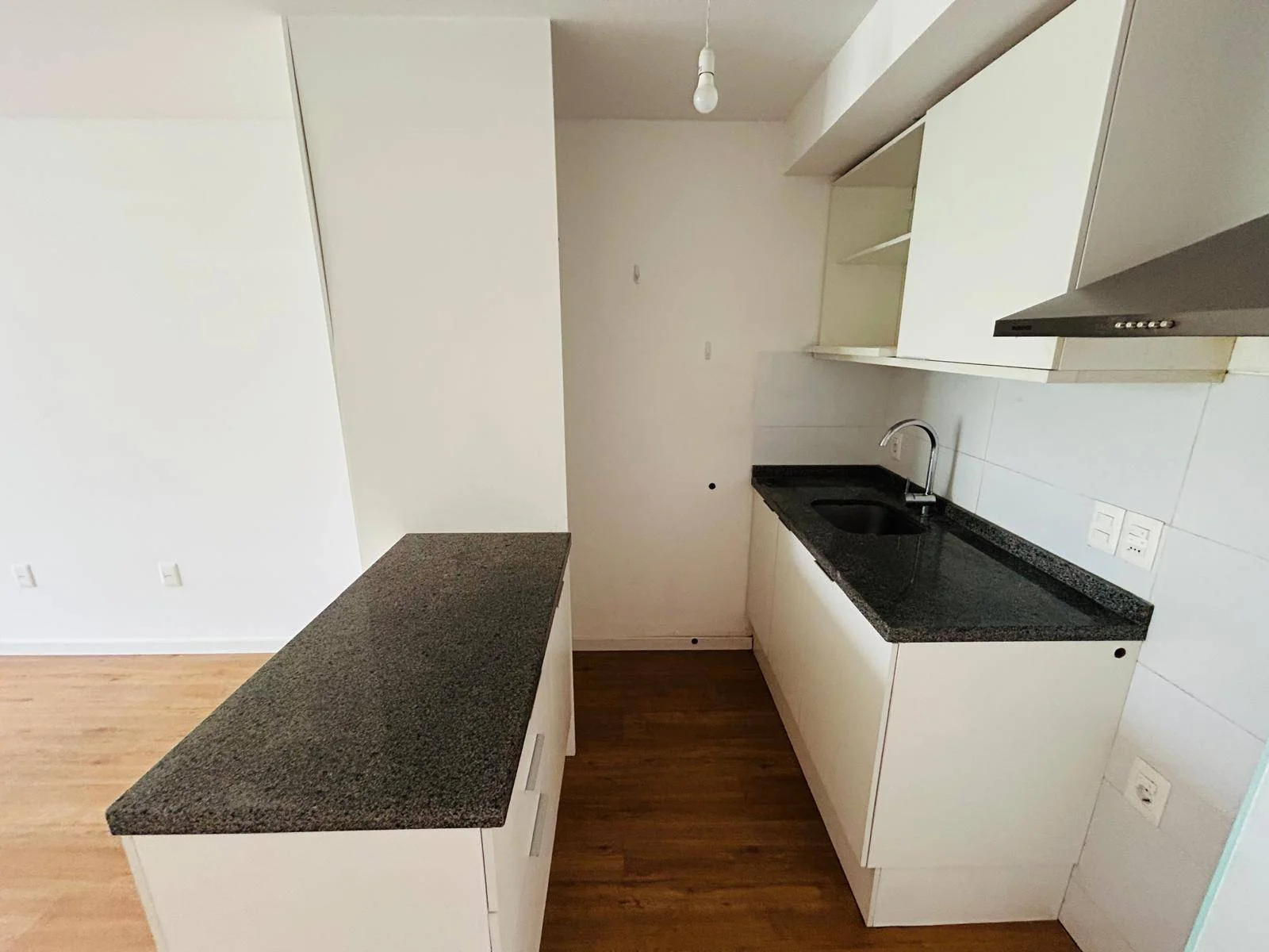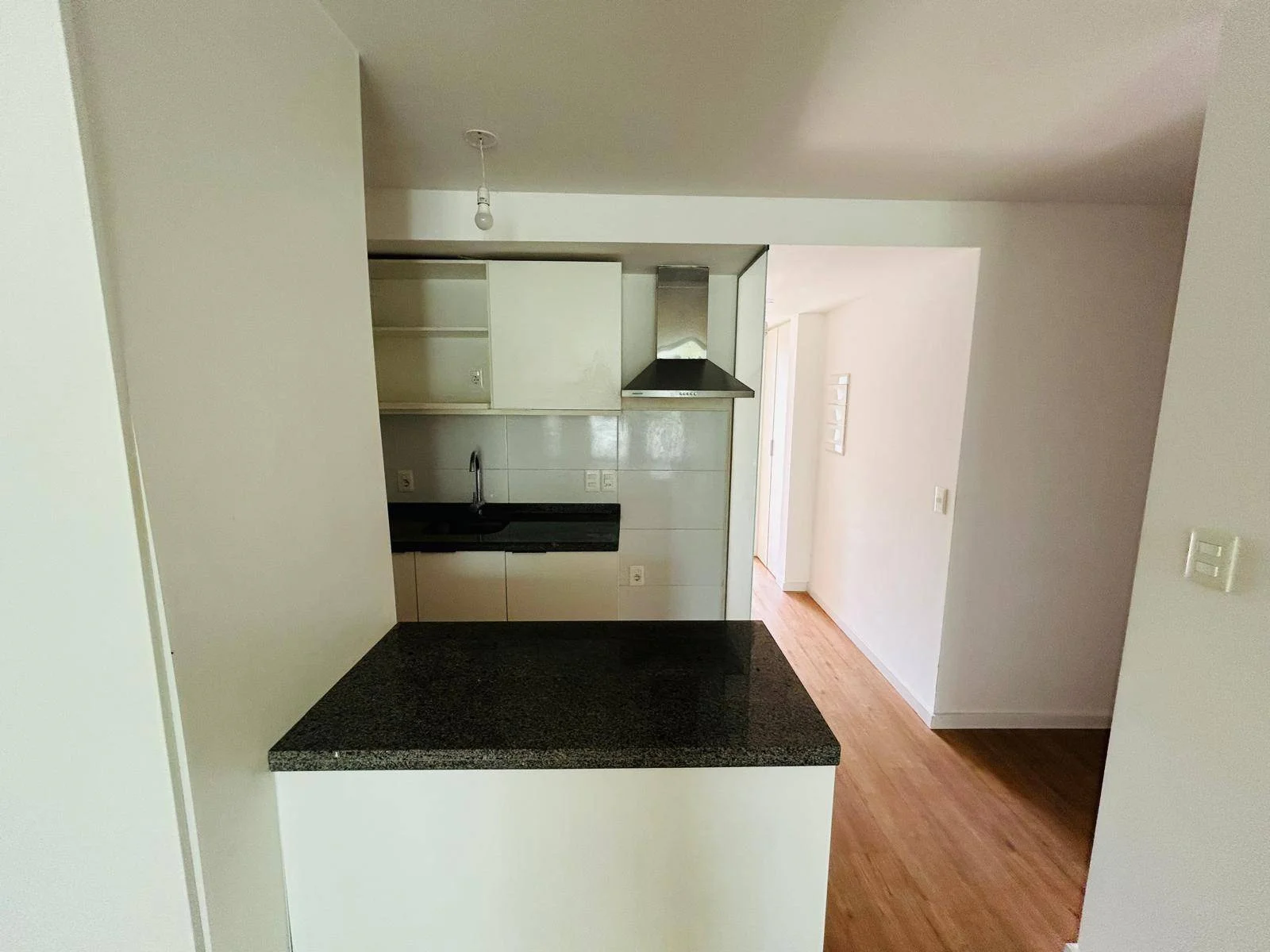 Cocina con placares varios y barra divisoria