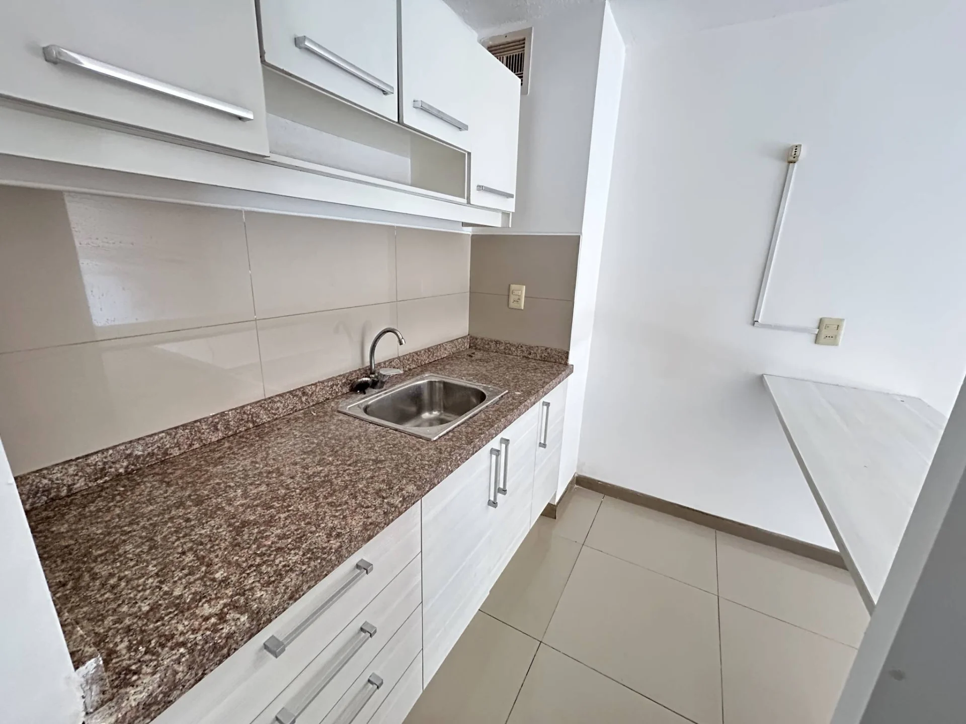 Ambiente de buen tamaño, cocina semi integrada con barra.