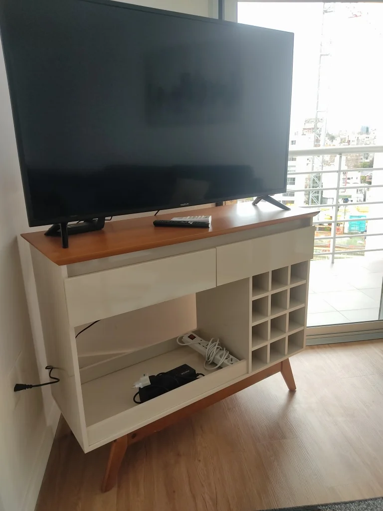 Cuenta con grande televisor, aire acondicionado y calefacción eléctrica.