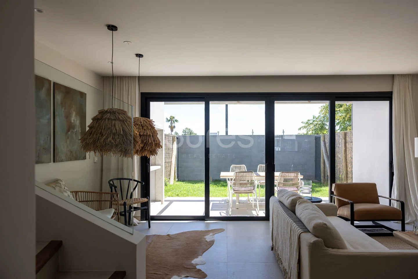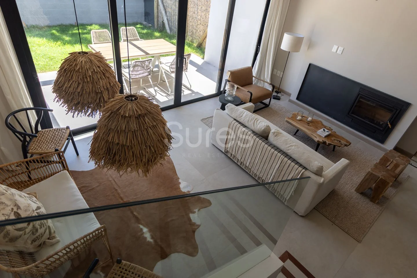 Alquiler de Casa en Carrasco Norte, Montevideo Dos Acres es un proyecto ubicado entre las calles Máximo Tajes, Cooper y Havre. En un predio de 9.000 m2, donde conviven casas y edificios, rodeados de espacios verdes, amenities y servicios. Un entorno verde y urbano que crece constantemente, rodeado de los mejores Colegios de Montevideo, muy próximo a Portones Shopping y el Centro de Arocena. El proyecto se desarrolla en tres torres con apartamentos que contarán con unidades desde studios hasta 1, 2 y 3 dormitorios, con amplias terrazas, y en planta baja con jardín y parrillero. Además de las torres, comprende una zona de casas. Esta casa se ubica en el bloque 4 y se desarrolla en dos plantas. En la planta baja cuenta con un living comedor con estufa a leña, cocina integrada con barra equipada con horno, anafe y campana, jardín de uso exclusivo con parrillero, baño social con previsión para ducha. Laundry. En planta alta ofrece 3 dormitorios con placares y 2 baños completos. Cuenta con 1 cochera doble. CARACTERISTICAS: Calefacción por losa radiante. DVH y persianas en dormitorios 2 Garajes Espacio para Box AMENITIES: Seguridad 24/7 y CCTV Videoporteria Handyman Club house Piscina Playroom para niños Parrilleros equipados Gimnasio Laundry Zonas de esparcimiento Gastos comunes estimados: $15.000 mensuales. - Fotos ilustrativas del showroom Nota Legal: La información contenida en esta publicación ha sido proporcionada por el cliente. Sures Real Estate no se responsabiliza por cualquier cambio o diferencia que pueda existir en los datos suministrados. . Caracteristicas: DORMITORIO EN SUITE, GARAJE, LIVING COMEDOR, TOILETTE, APTO PARA FAMILIAS/NI?OS, PERMITE MASCOTAS, PLACARD EN COCINA, PLACARD EN DORMITORIO, SEGURIDAD, AREA COMERCIAL XINTEL (SRS-SRS-12411)