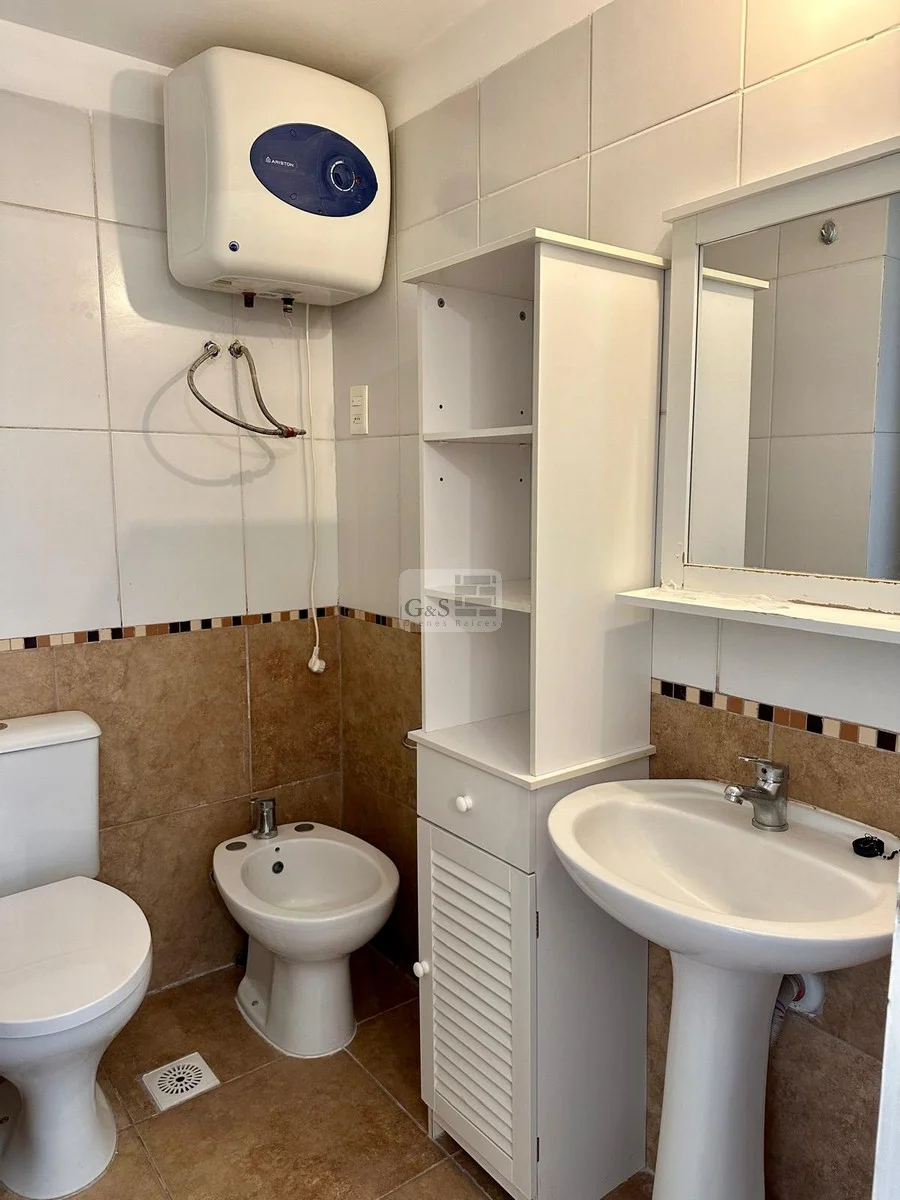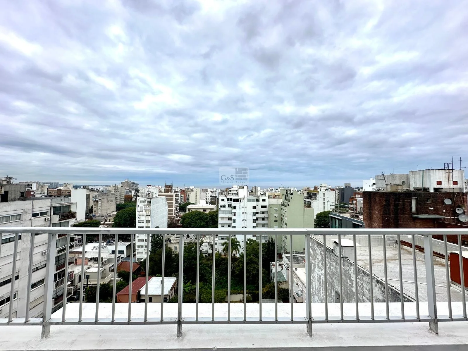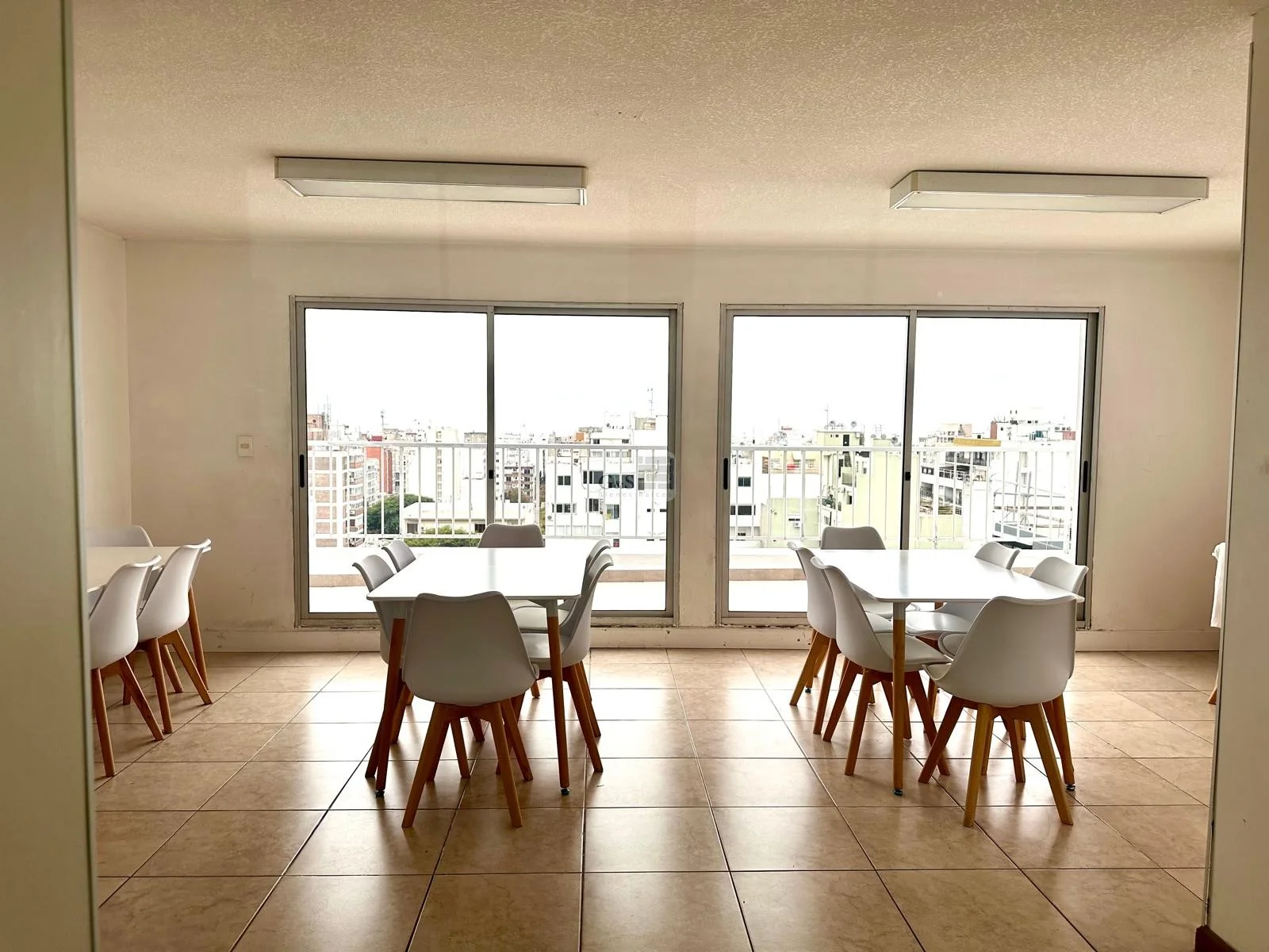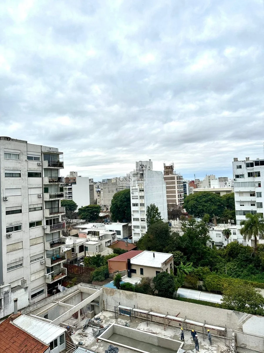 Orientado al sur, muy luminoso y con vista despejada. Tiene aire acondicionado, cocina integrada con placares y frigobar, amplio placard y baño con calefón.