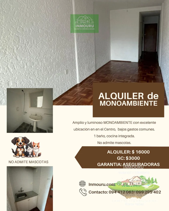 Monoambiente en el Centro de Montevideo Ubicación: Héctor Gutiérrez Ruiz esquina Canelones Este acogedor apartamento cuenta con cocina integrada y acceso por ascensor. Alquiler mensual: $16.000 Gastos comunes: $3.000 Garantía: A través de aseguradora Consulte con nuestros asesores para más información. Referencia Interna : Tera-2048