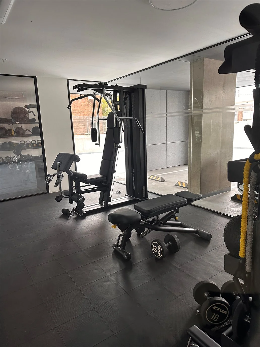 Baño con mueble, espejo y mampara. Aire acondicionado en living y dormitorios. Calefón.