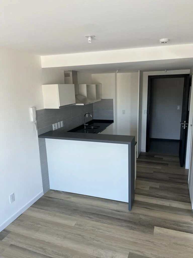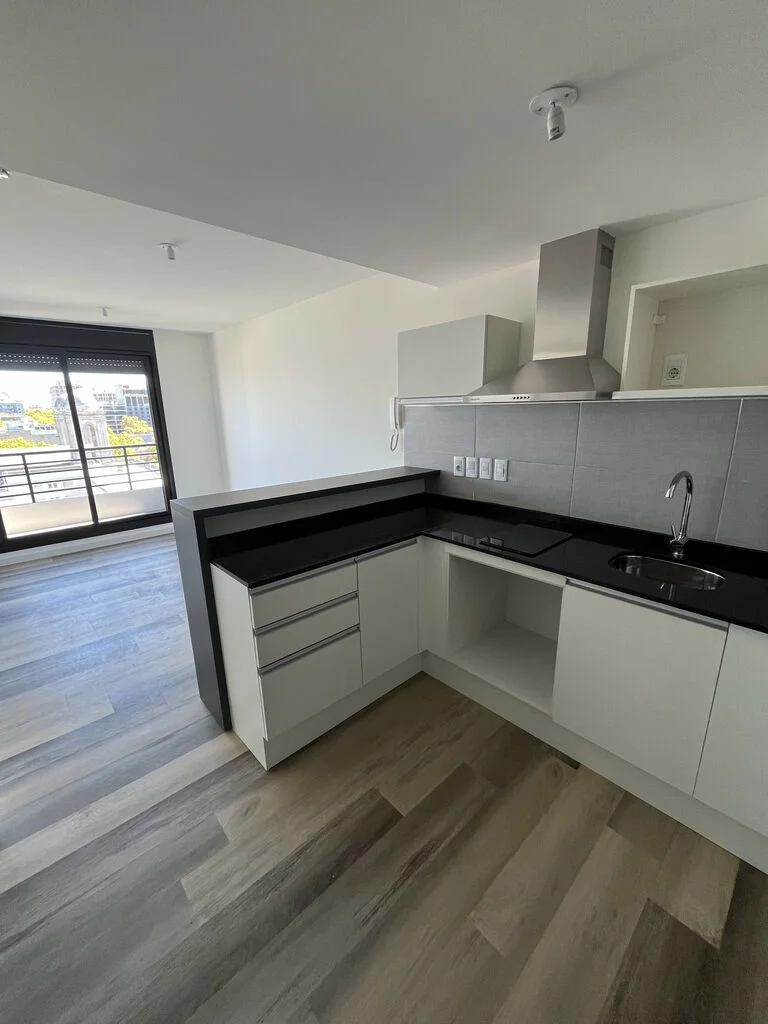 Cocina integrada con muebles bajo y sobre mesada horno de empotrar y anafe