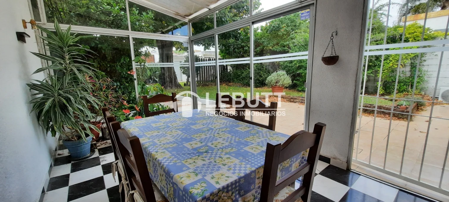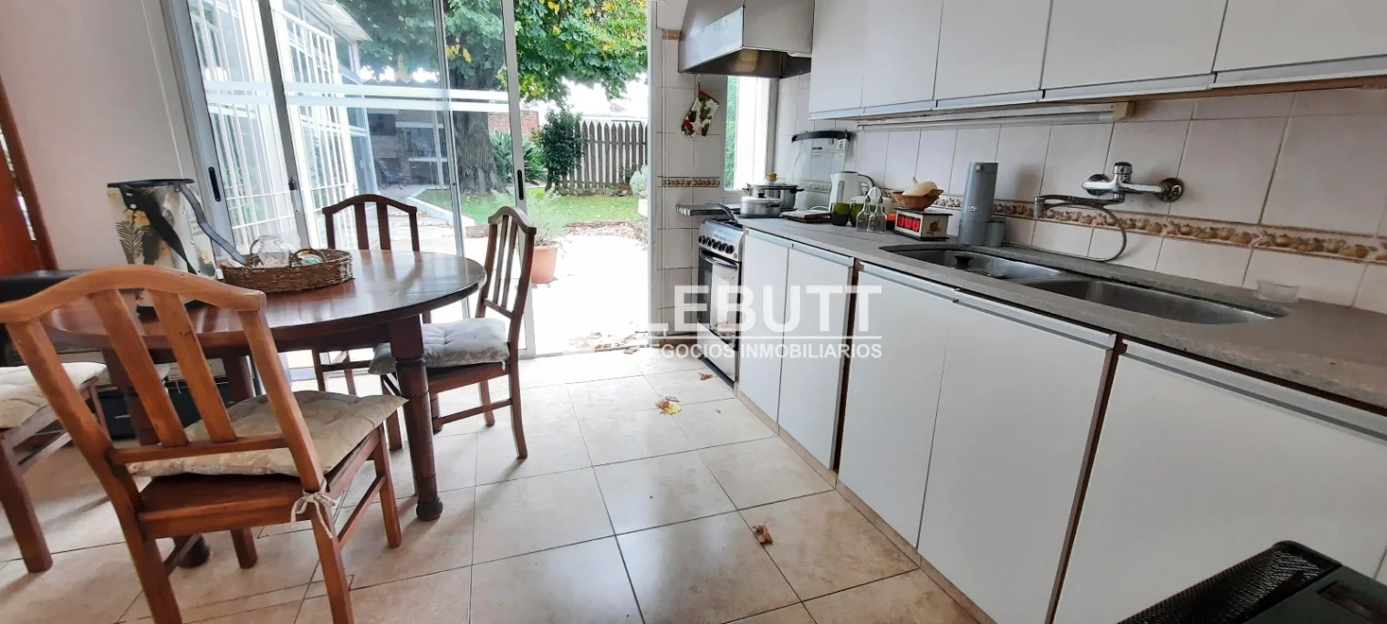 Dispone de 2 Plantas - Planta principal elevada sobre nivel de calle. Acceso a amplio Living Comedor con Estufa a leña, Aire Acondicionado y gran ventanal al frente que brinda una vista muy despejada y luminosa. Cocina definida con comedor diario y Área cerrada con amplios ventanales con vista y salida al Jardin. Cuenta con Baño de servicio. 2 Dormitorios de buen tamaño y un Baño completo central.