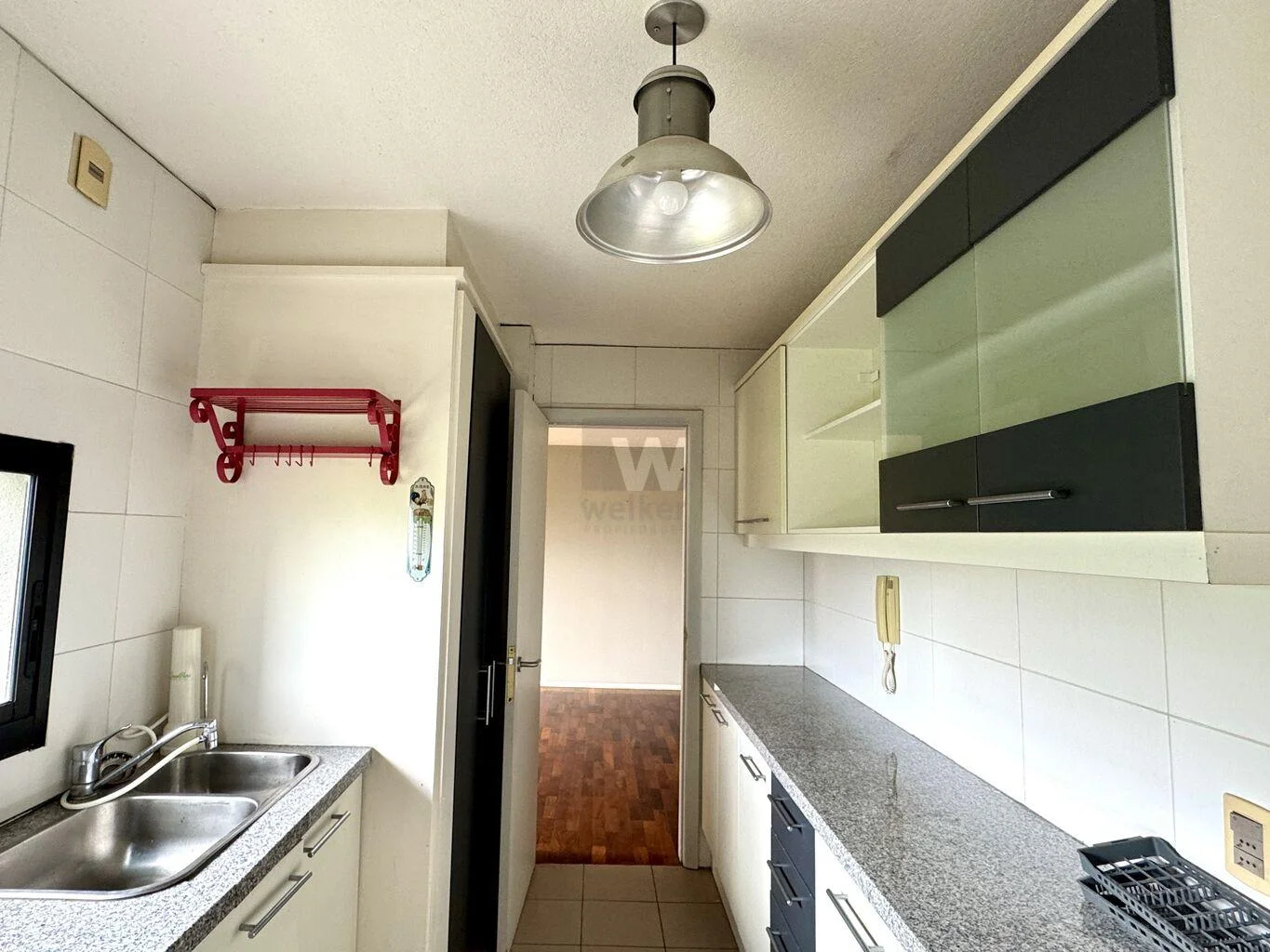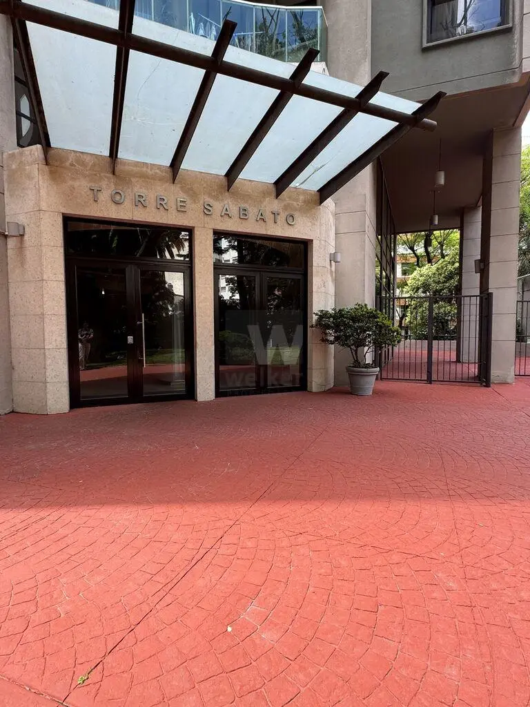El apartamento, ubicado en el séptimo piso de Torres Sábato y orientado al noroeste, cuenta con dos dormitorios, losa central, dos baños (uno completo y otro social) y garage compartido. El complejo ofrece vigilancia 24 horas, parque, piscina cerrada y gimnasio, brindando comodidad y seguridad en un entorno moderno.