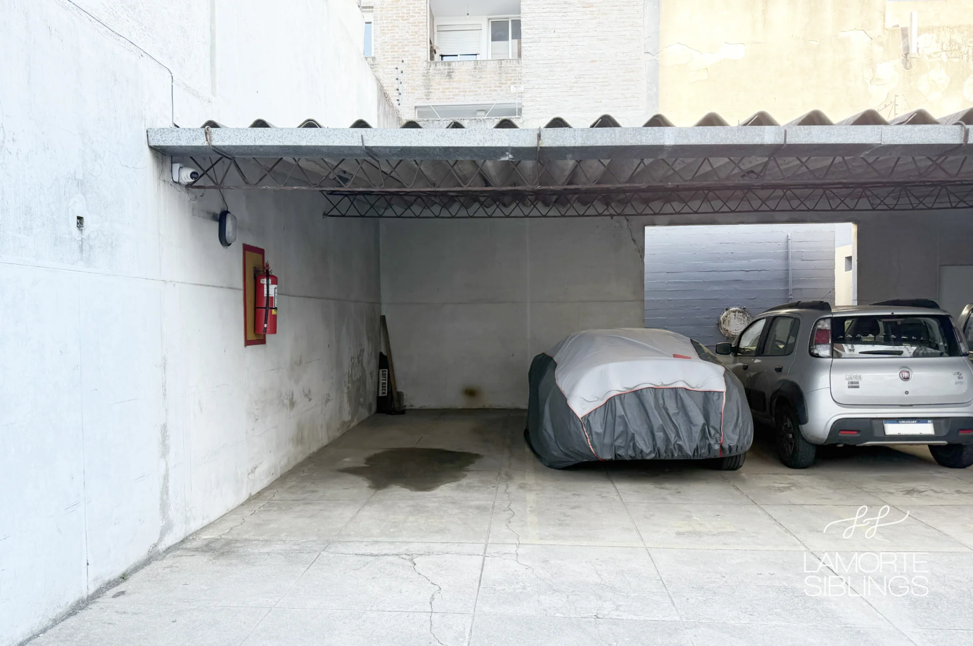 -Cochera techada dentro del edificio, con reja y portón eléctrico.