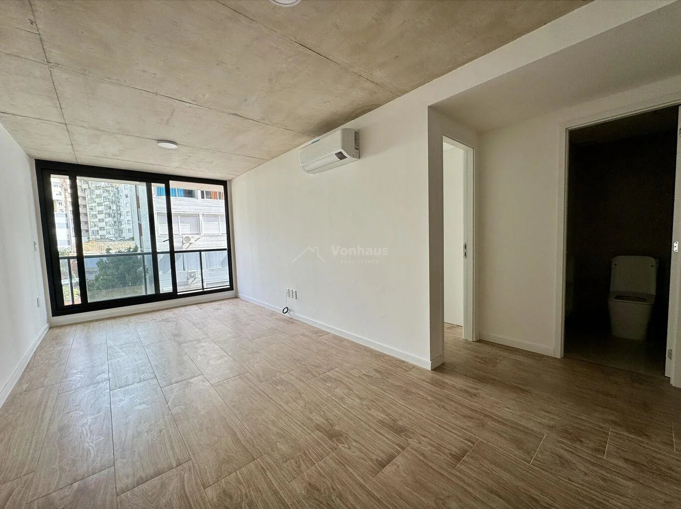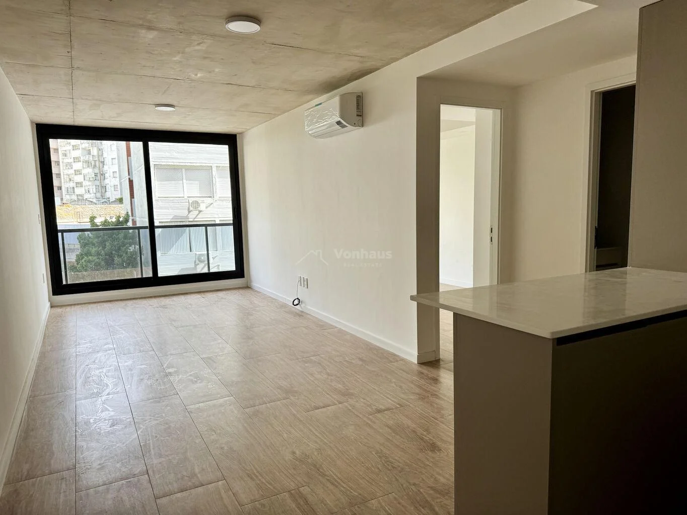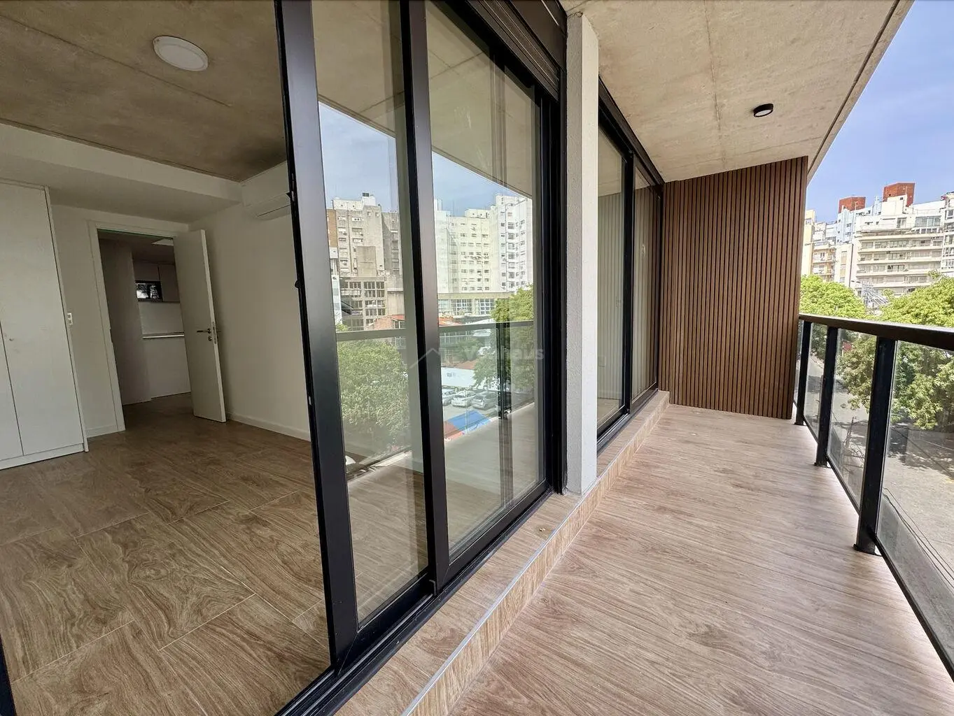 Salida a balcón de 6m2 al frente, que abarca todo el apartamento, muy luminoso.