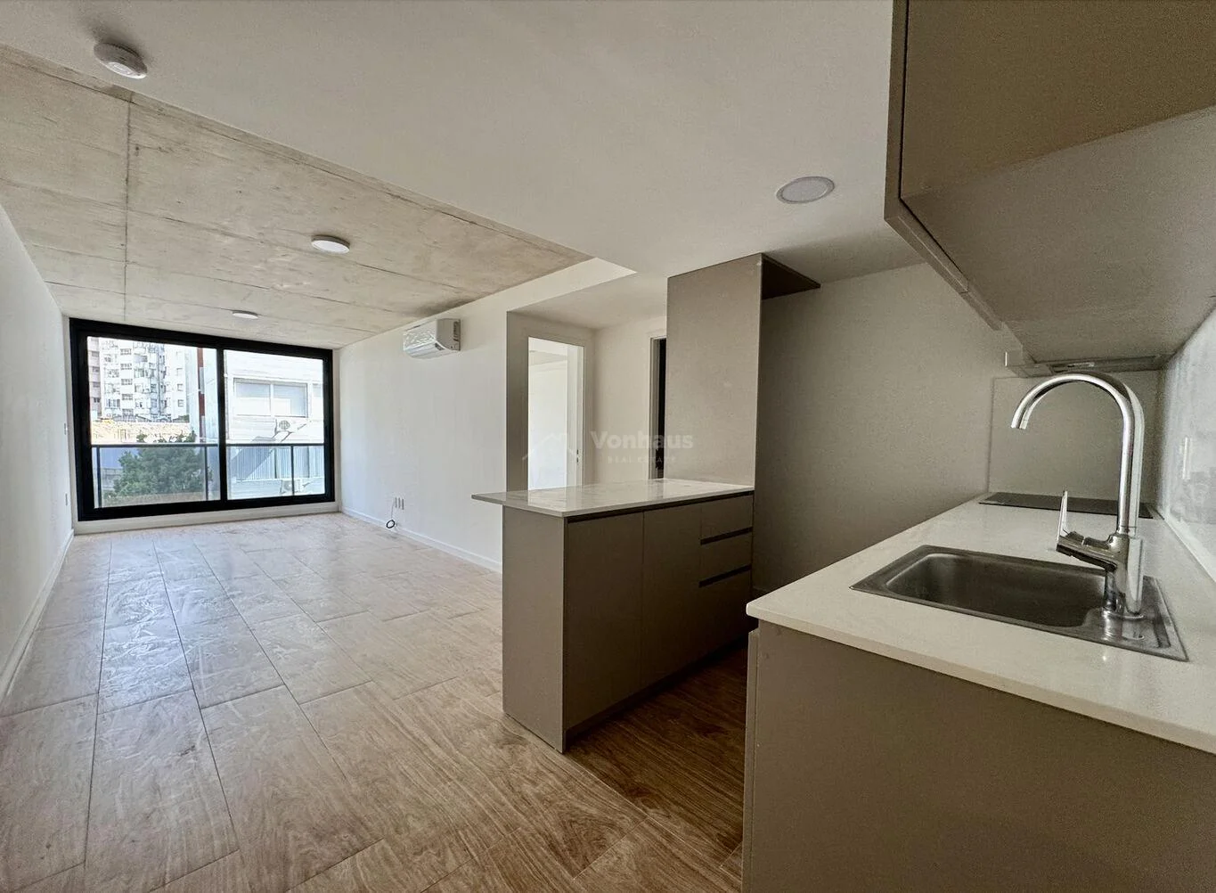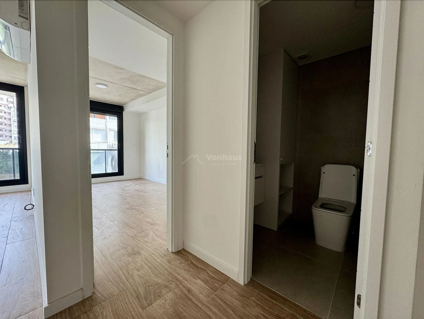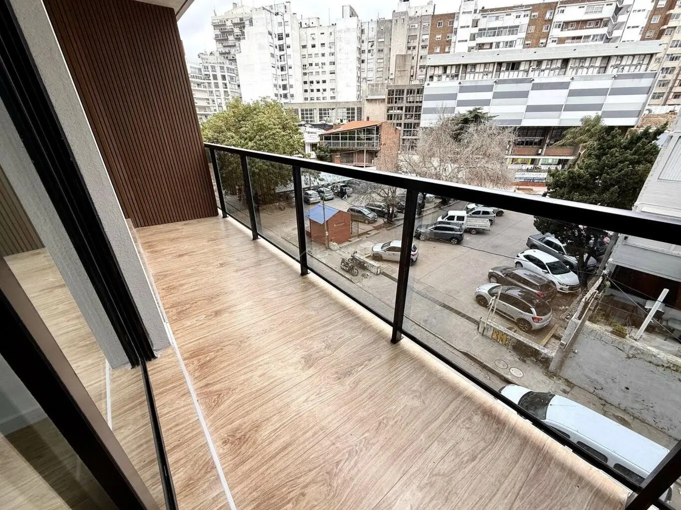 Salida a balcón de 6m2 al frente, que abarca todo el apartamento, muy luminoso.