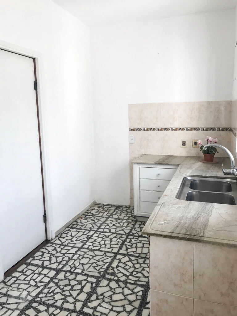 Los pisos de la cocina y del hall son de escolla de mármol. Living y ambos dormitorios cuentan con pisos de parque plastificados.