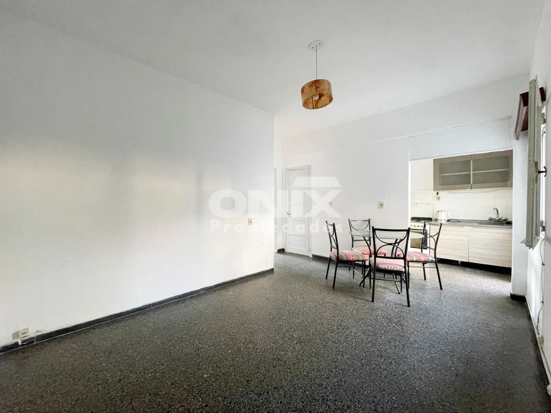 Amplio y luminoso estar con cocina integrada.