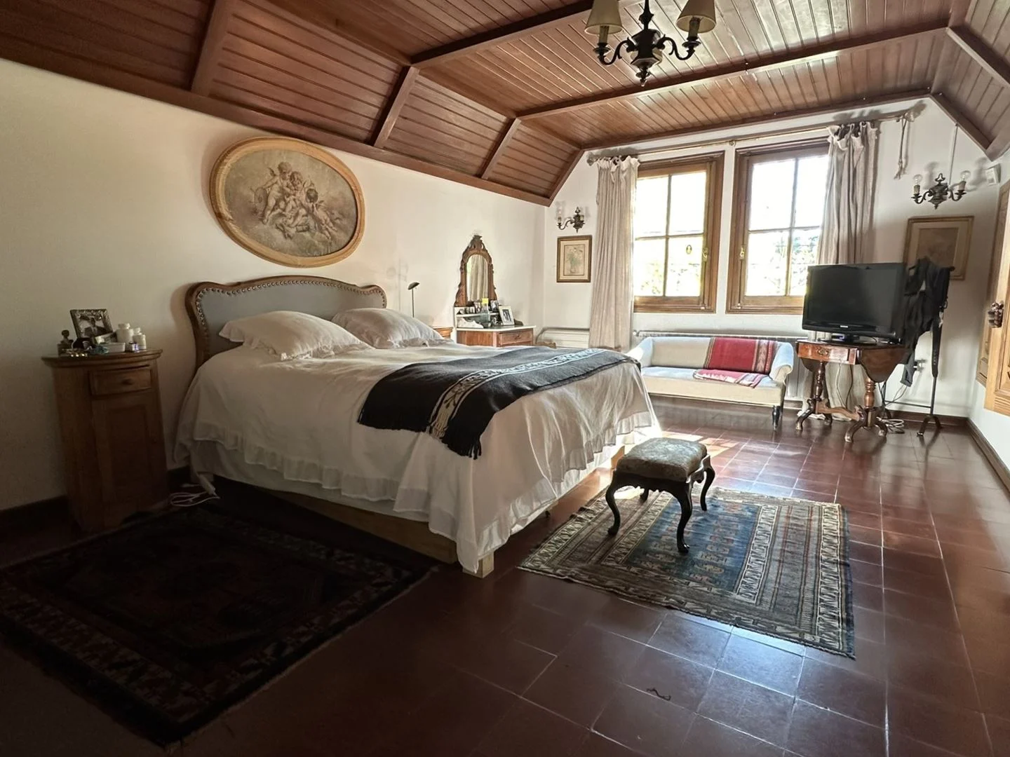 Calefacción por radiadores a gas y aire acondicionado en dormitorio principal.
