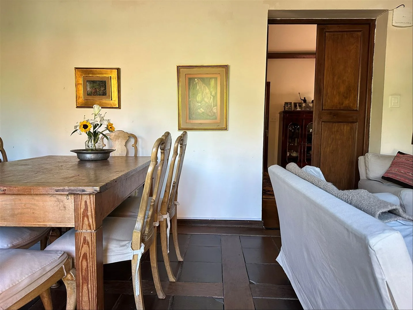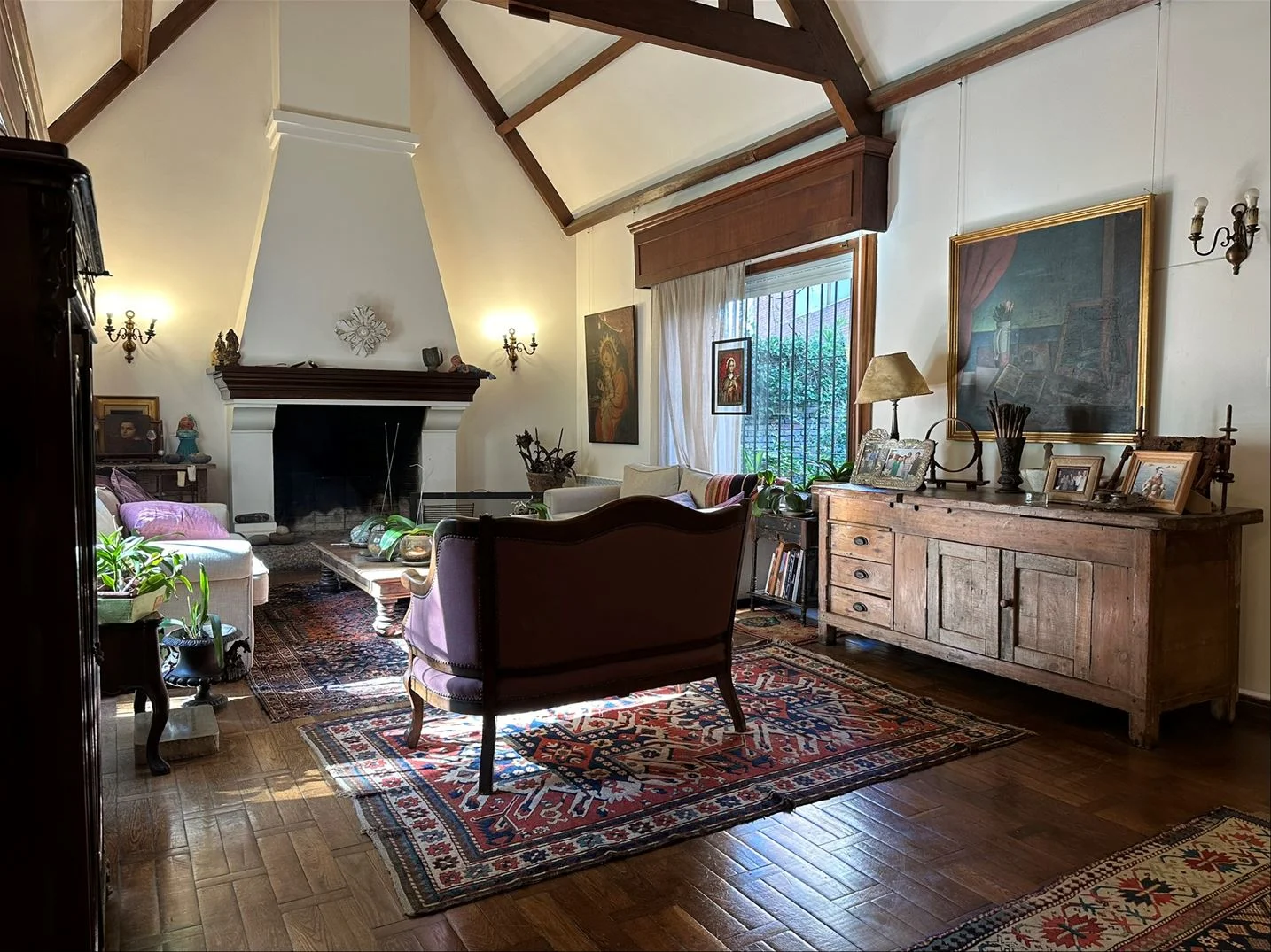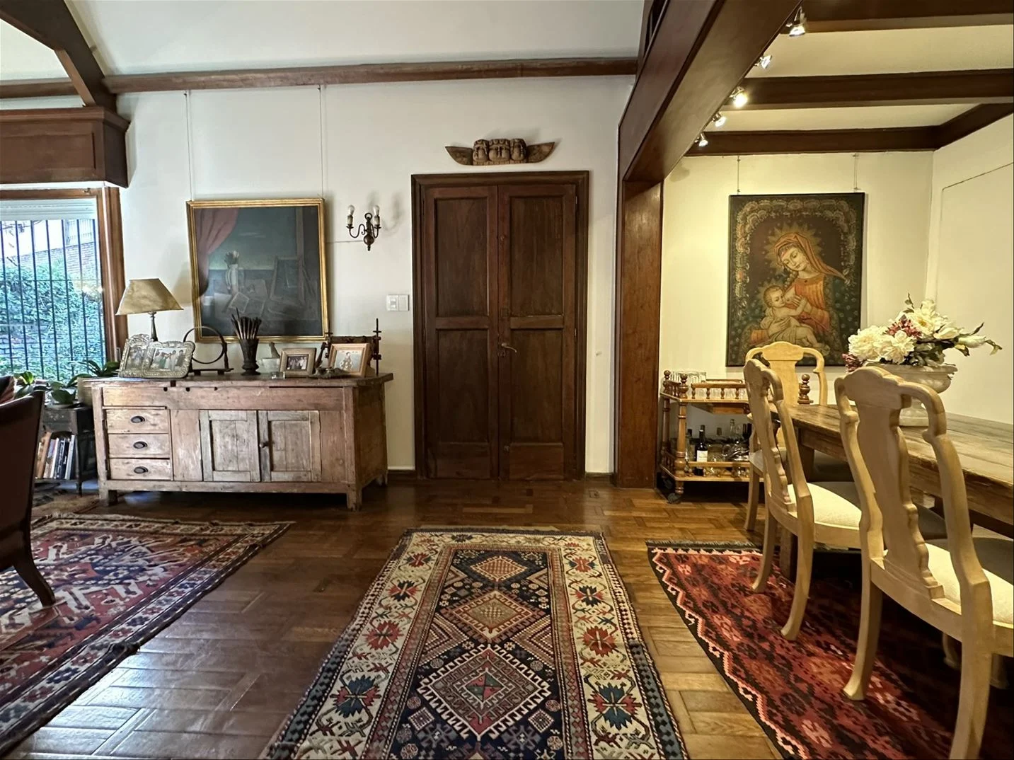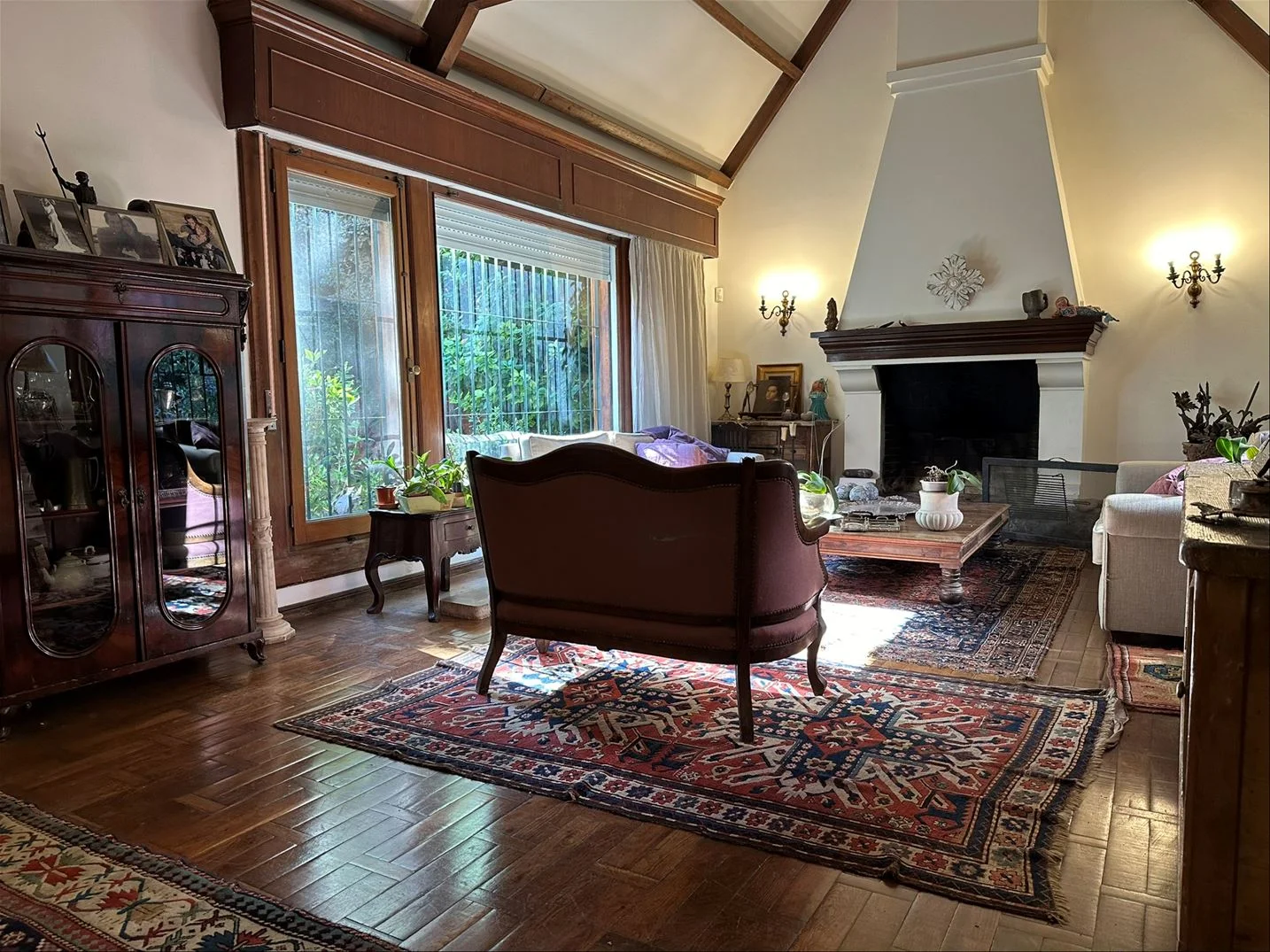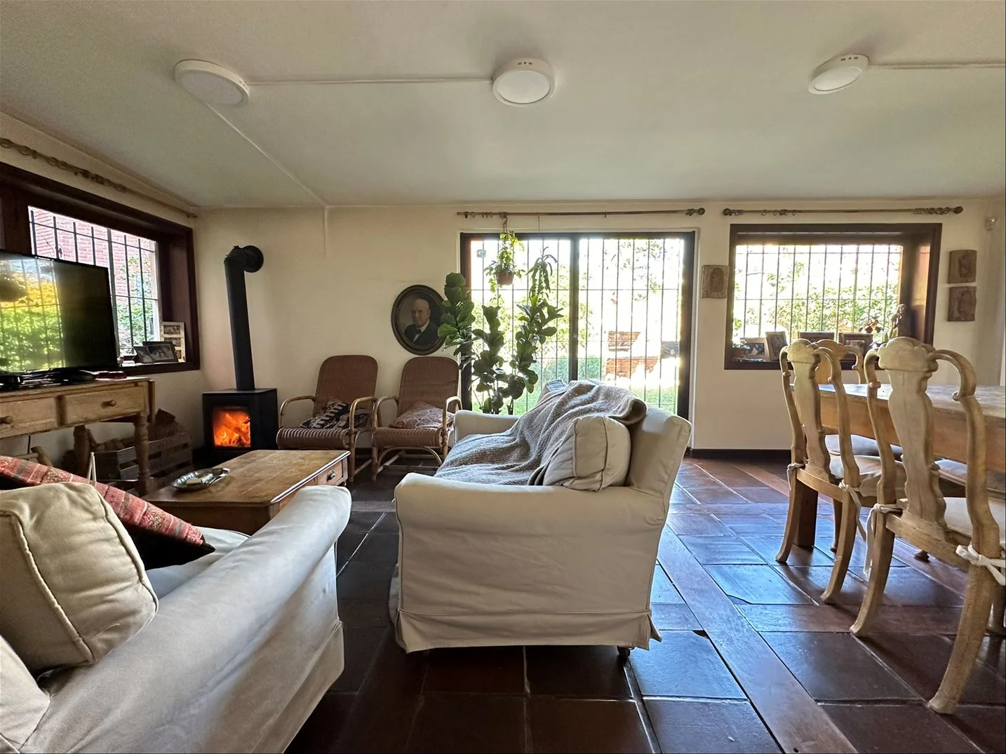 Estar y comedor diario con estufa de alto rendimiento, con salida al jardín con parrillero.