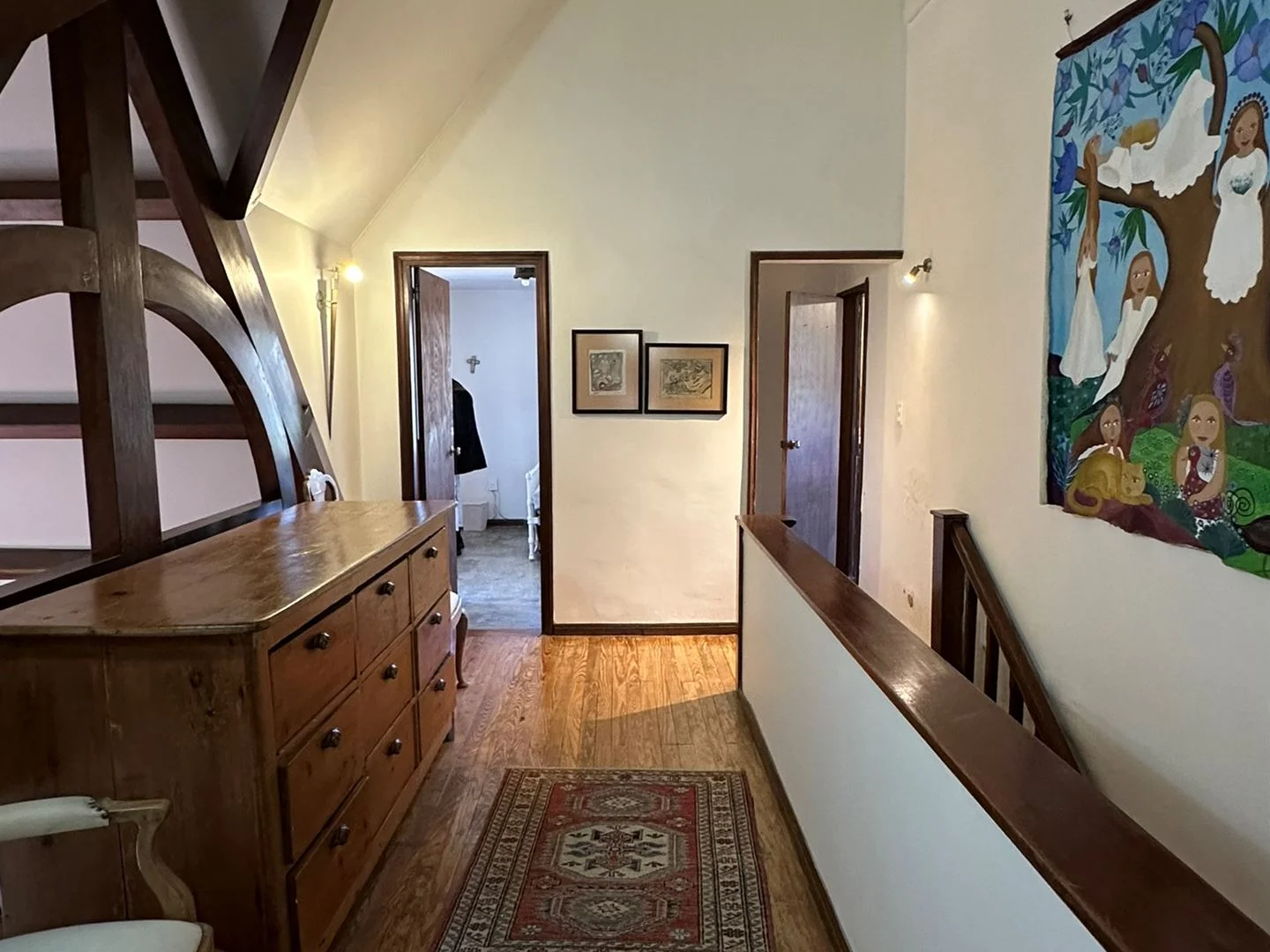 En planta alta cuenta con hall de distribución. 2 dormitorios, principal de gran tamaño con baño en suite y el otro con salida a balcón con vista a la rambla.