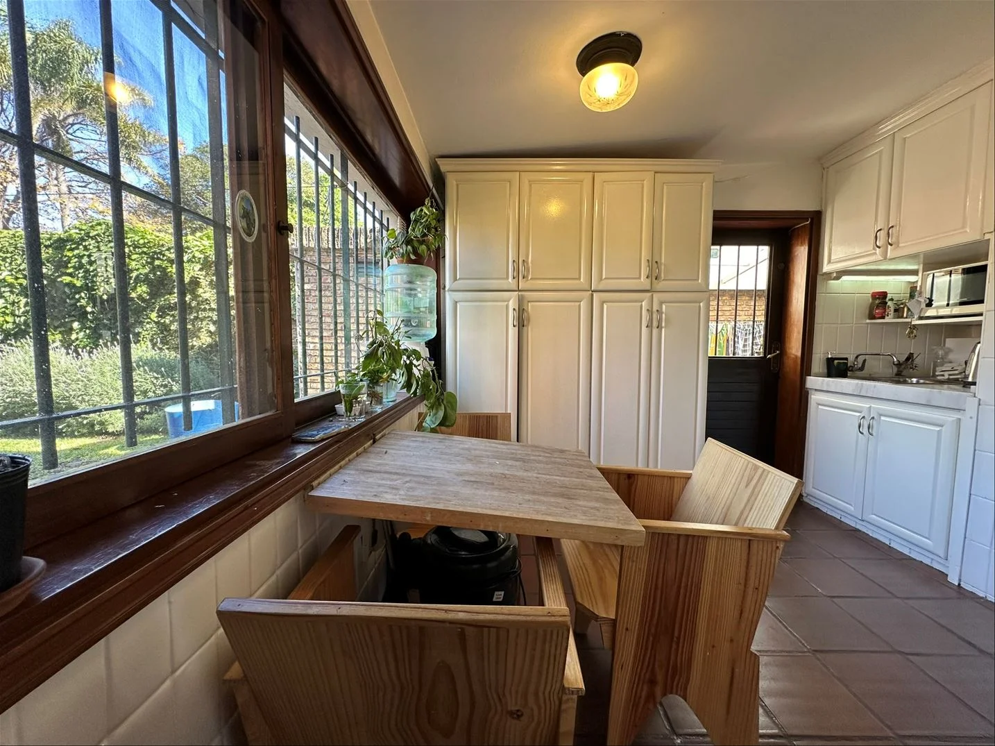 Cocina definida con antecocina y comedor diario. Salida lateral al fondo, y área de lavadero y tender techada.