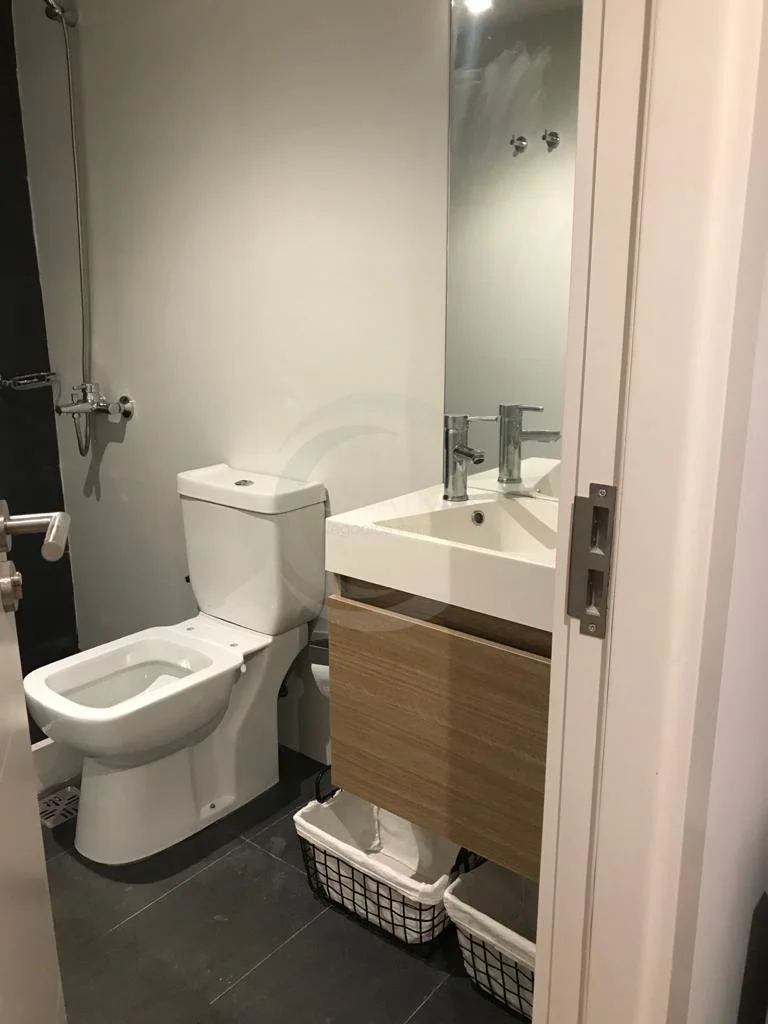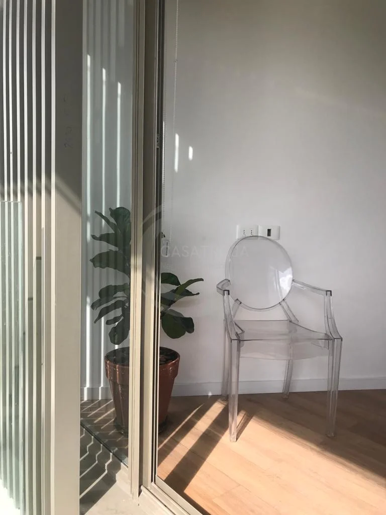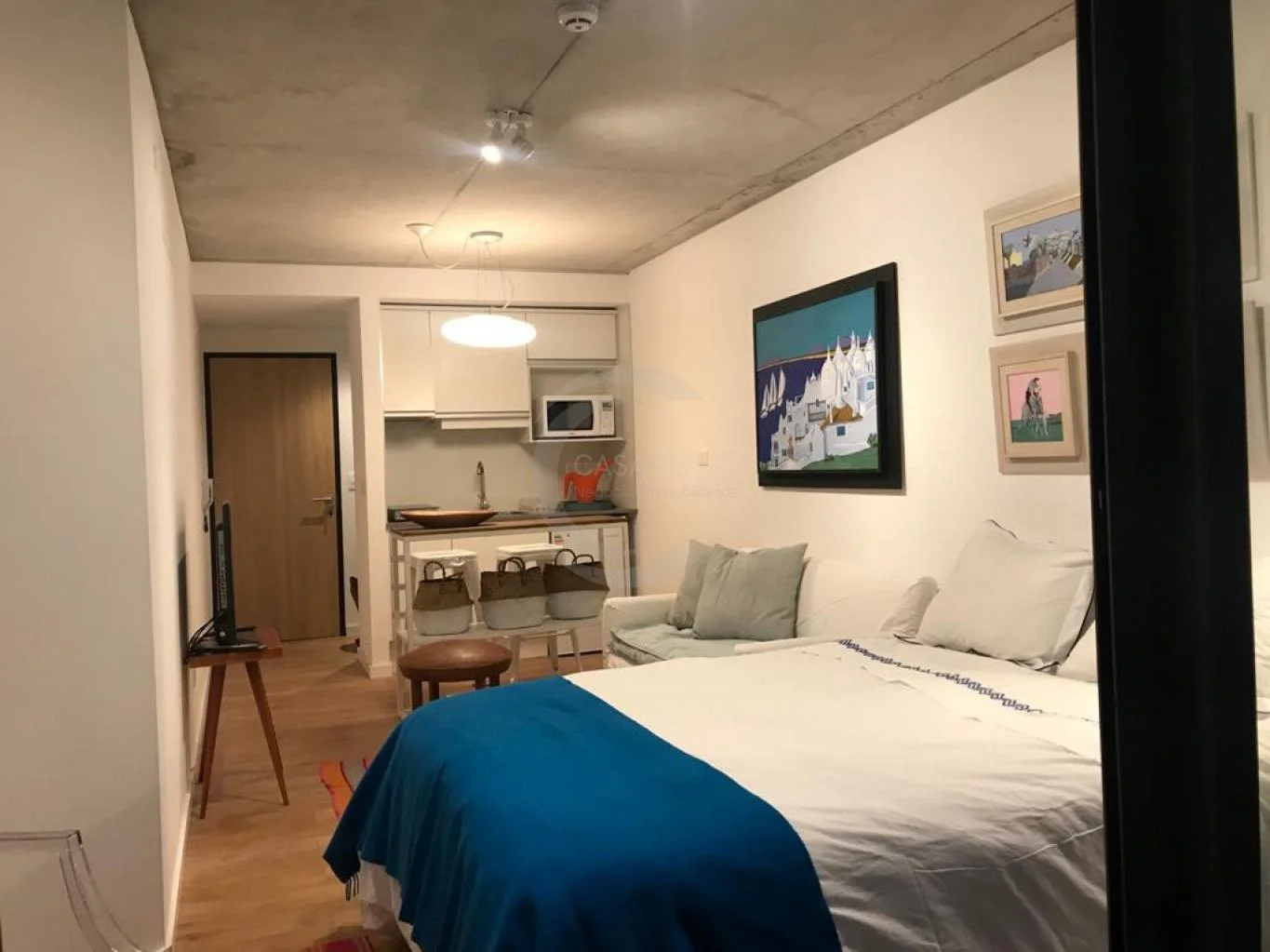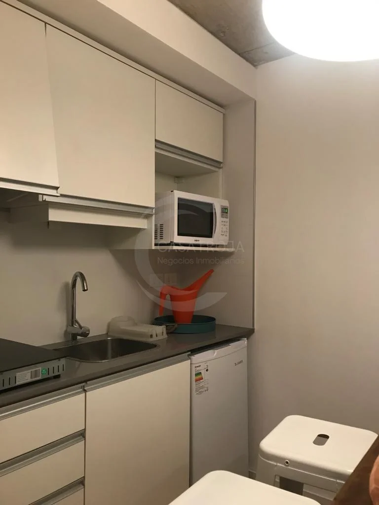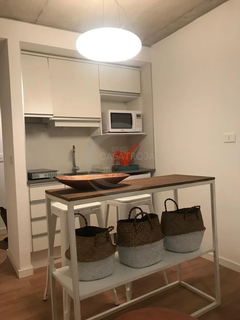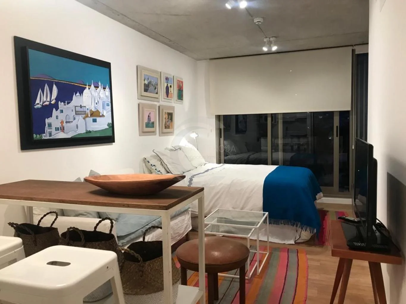 La cocina está incorporada al ambiente principal, con diseño práctico y contemporáneo. El apartamento presenta una decoración prolija, pisos de terminación moderna y grandes ventanales que aportan amplitud y luz durante todo el día. El baño es completo, de líneas simples y actuales.