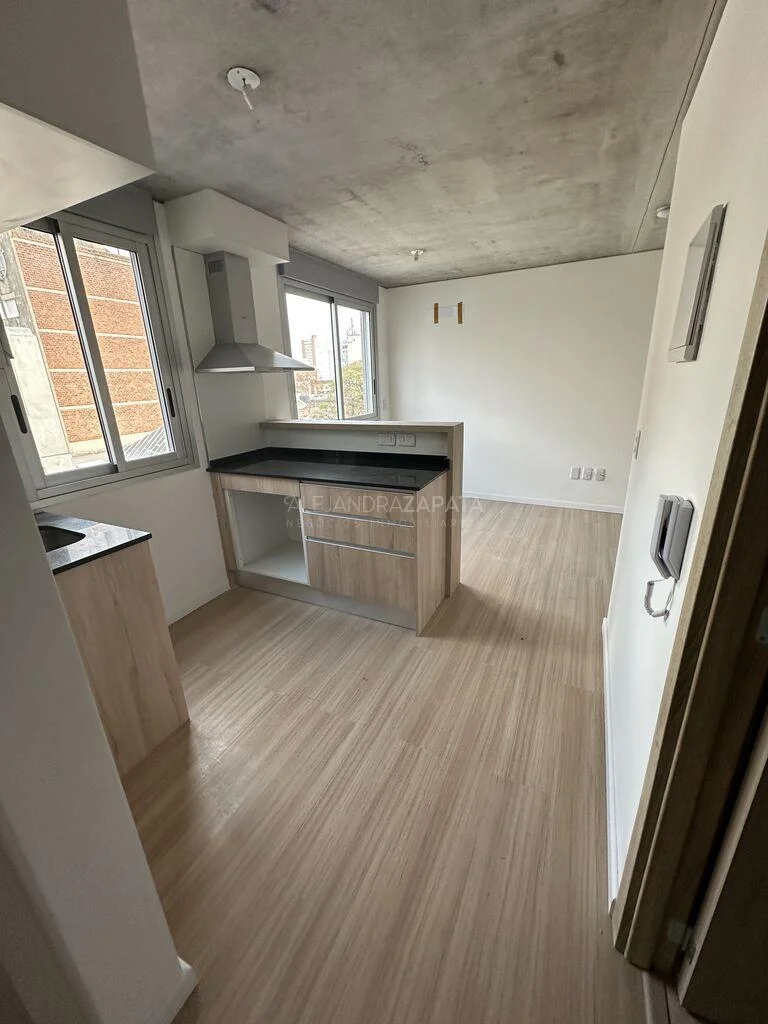 La unidad cuenta que cocina integrada con campana de extracción de aire, horno y anafe instalados. Placares sobre y bajo mesadas, amplio placard para ropa, pre-instalación de aire acondicionado.