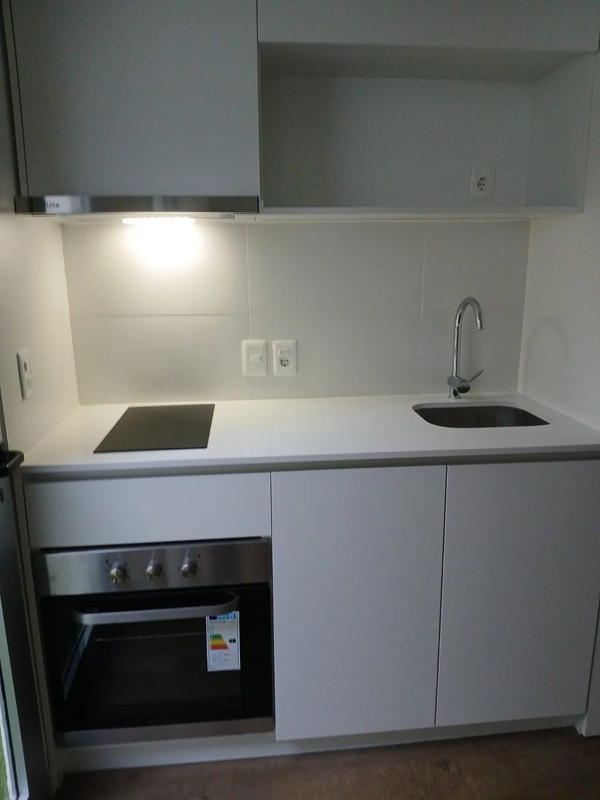 Cocina integrada equipada con anafe, horno, campana, luz led