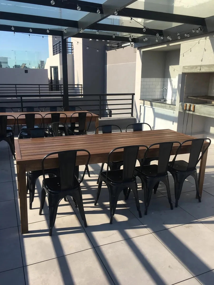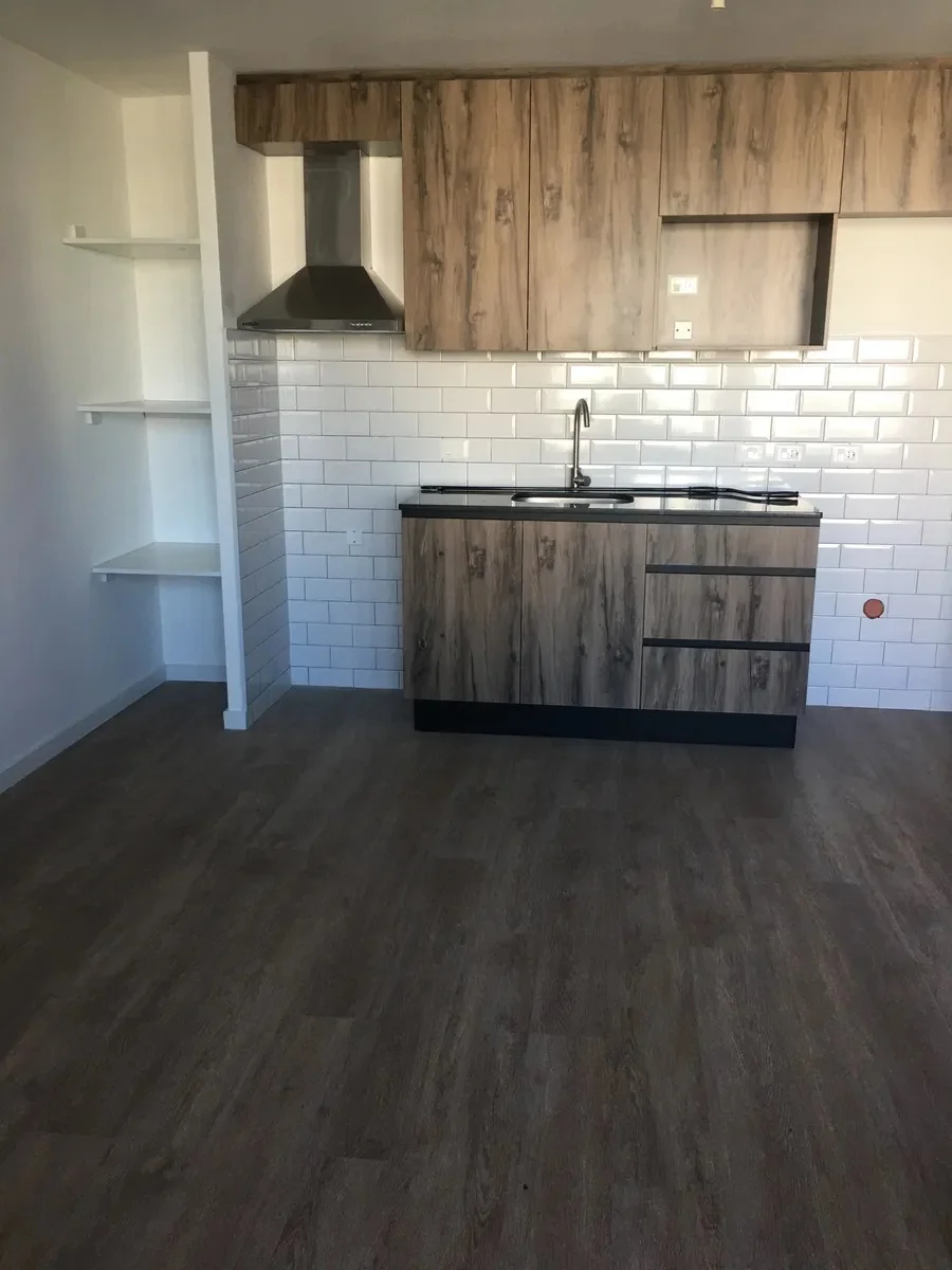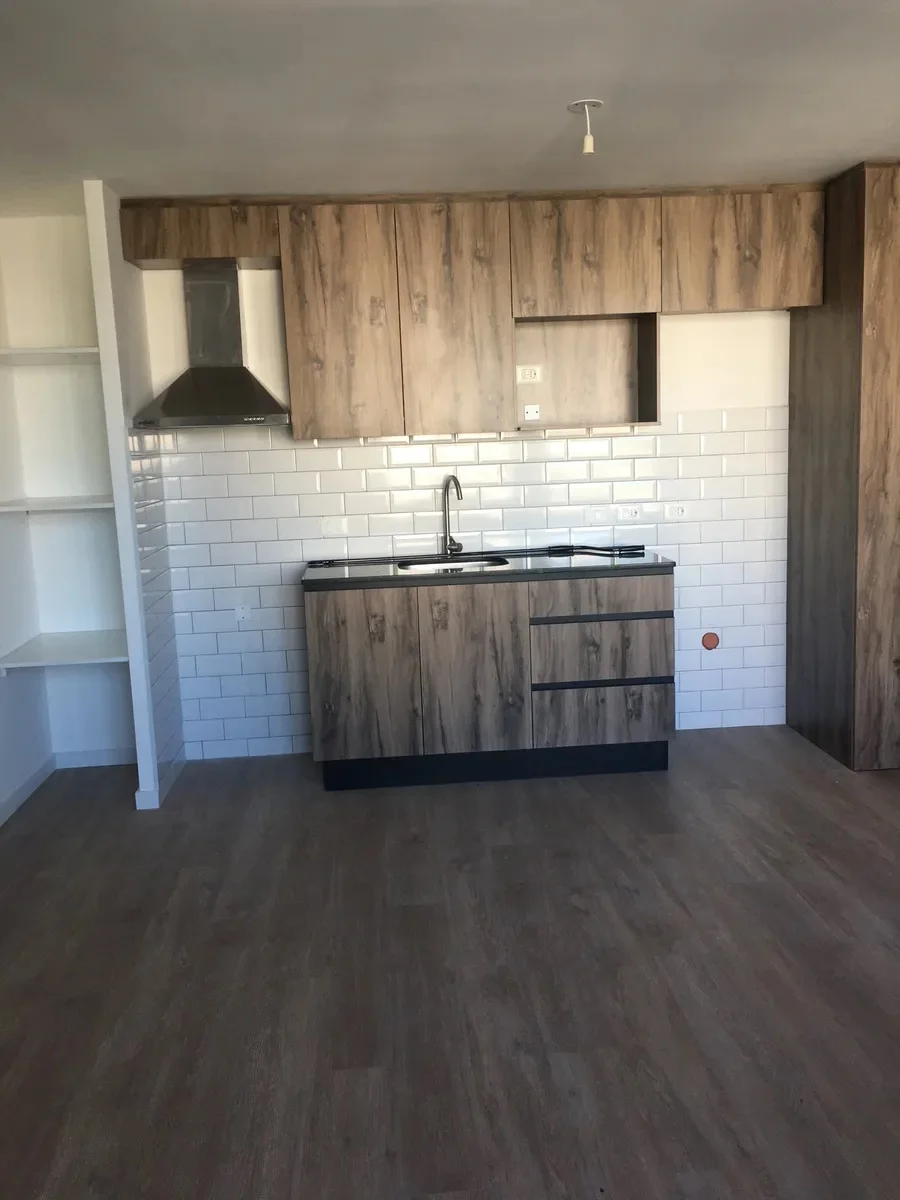 Cuenta con cocina integrada con mueble sobre y bajo mesada, campana extractora de acero inoxidable, aire acondicionado, baño completo y terraza lavadero con conexión para lavarropas.