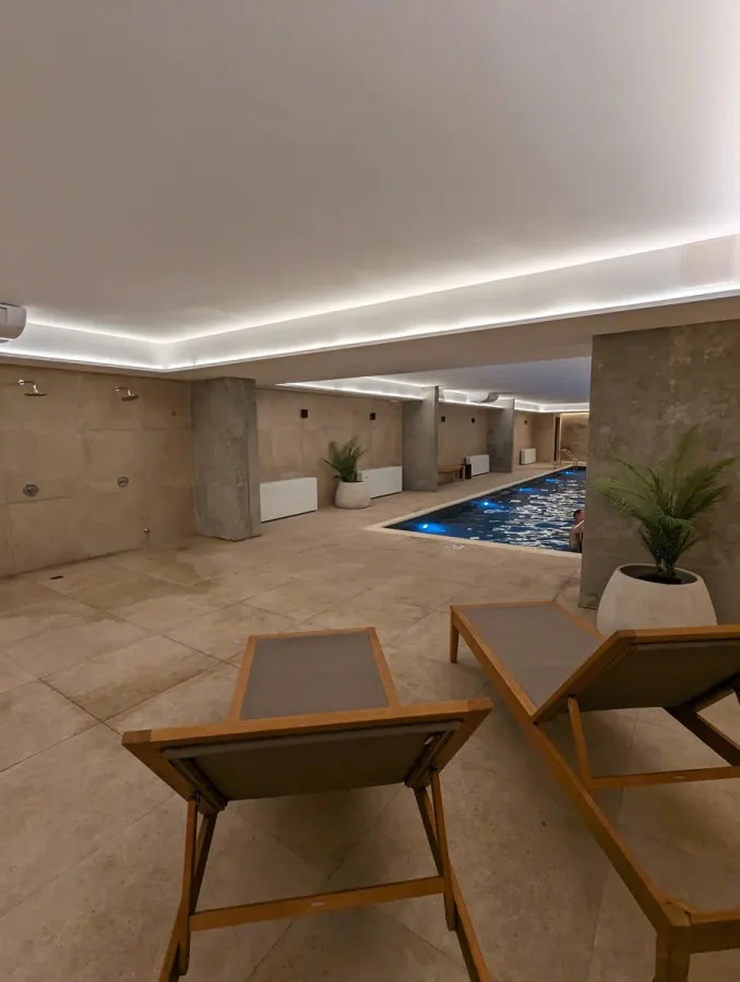 El edificio cuenta con gimnasio, piscina interior climatizada, co-work, cancha de fútbol y basketbol exterior, barbacoas exteriores, salón gourmet, portería y lavandería
