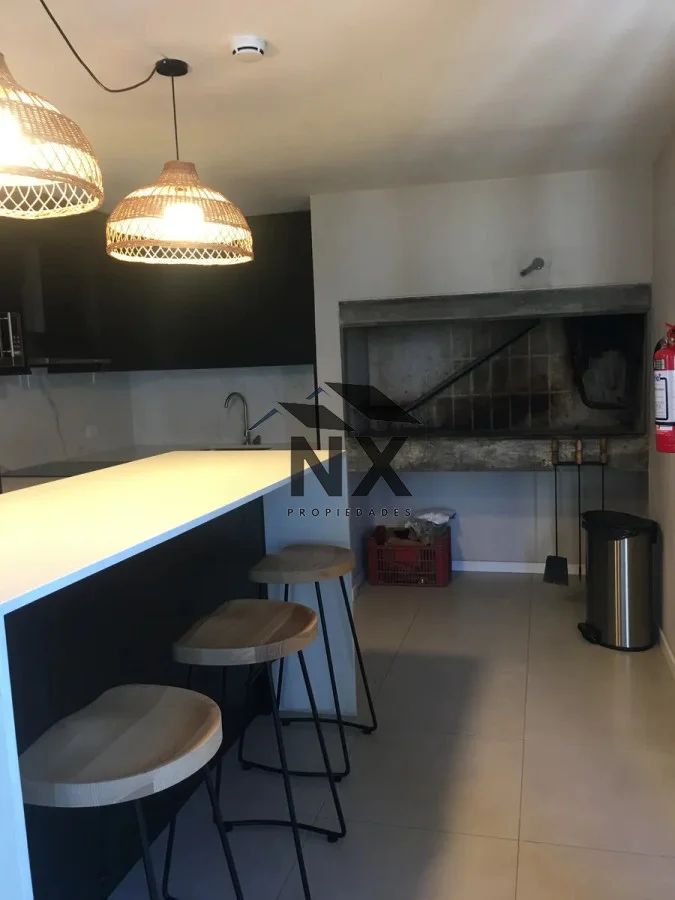 -Cuenta con cocina integrada, placares bajo mesada y aéreos, campana extractora.