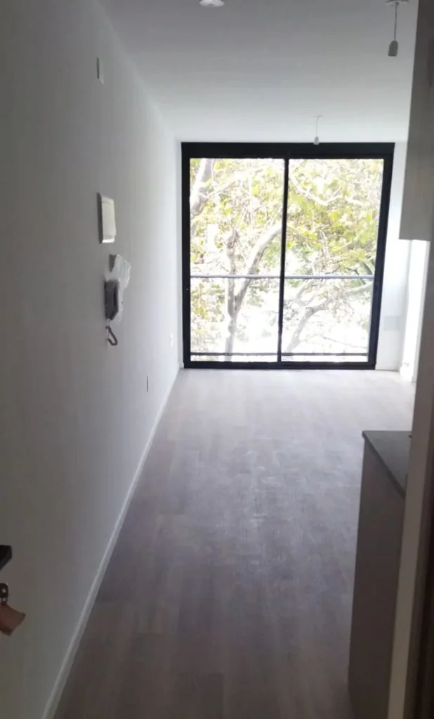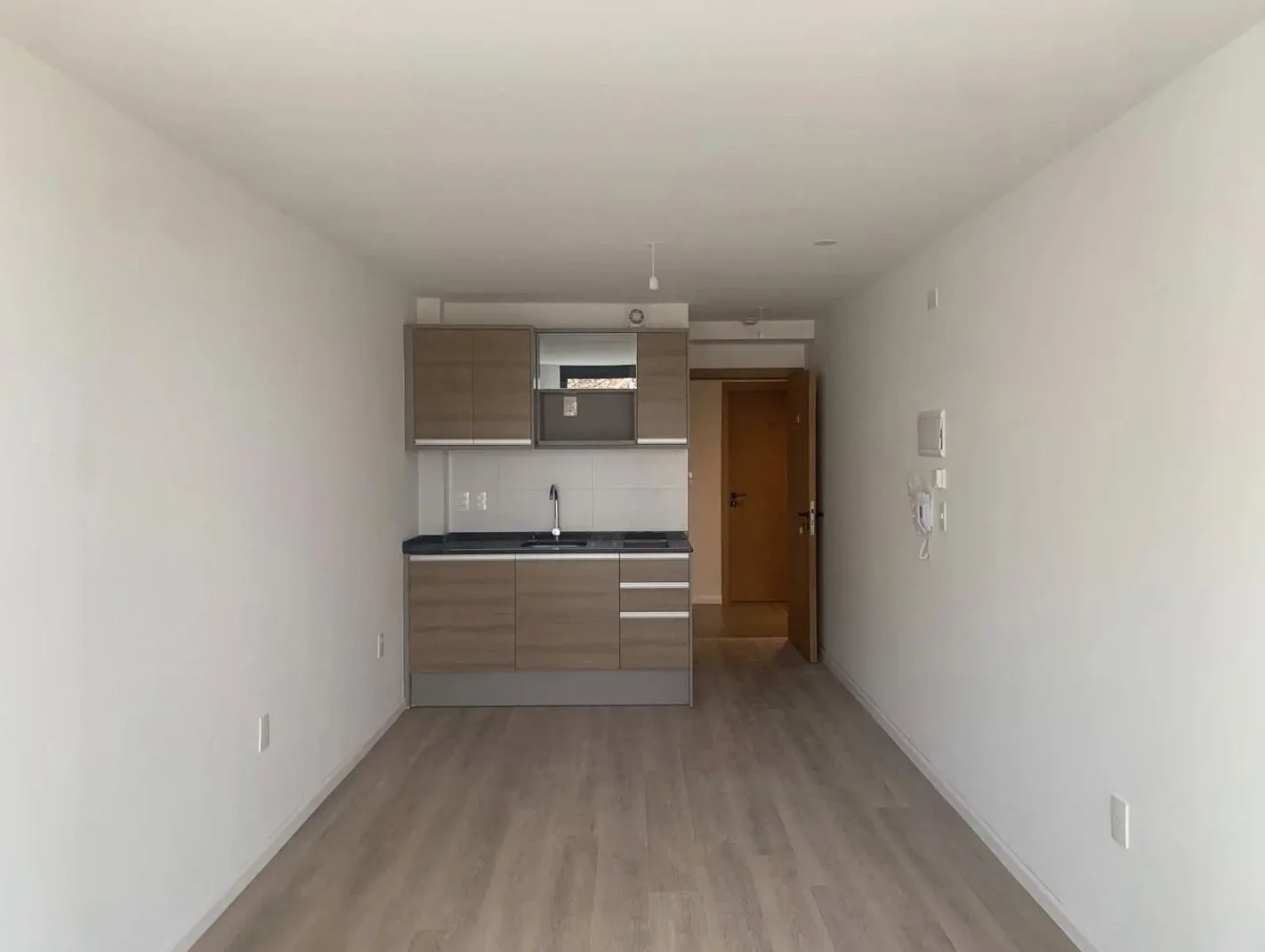 El apartamento cuenta con 32 m² internos con baño completo, anafe, calefón y muebles bajo mesada.