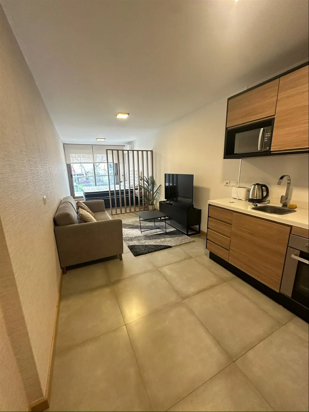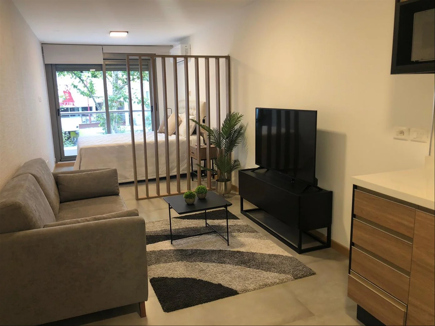 Hermoso monoambiente con Terraza al frente, muy cómodo, amueblado con lindos muebles, nuevos, mucho gusto, tiene horno anafe, electrodomésticos nuevos.