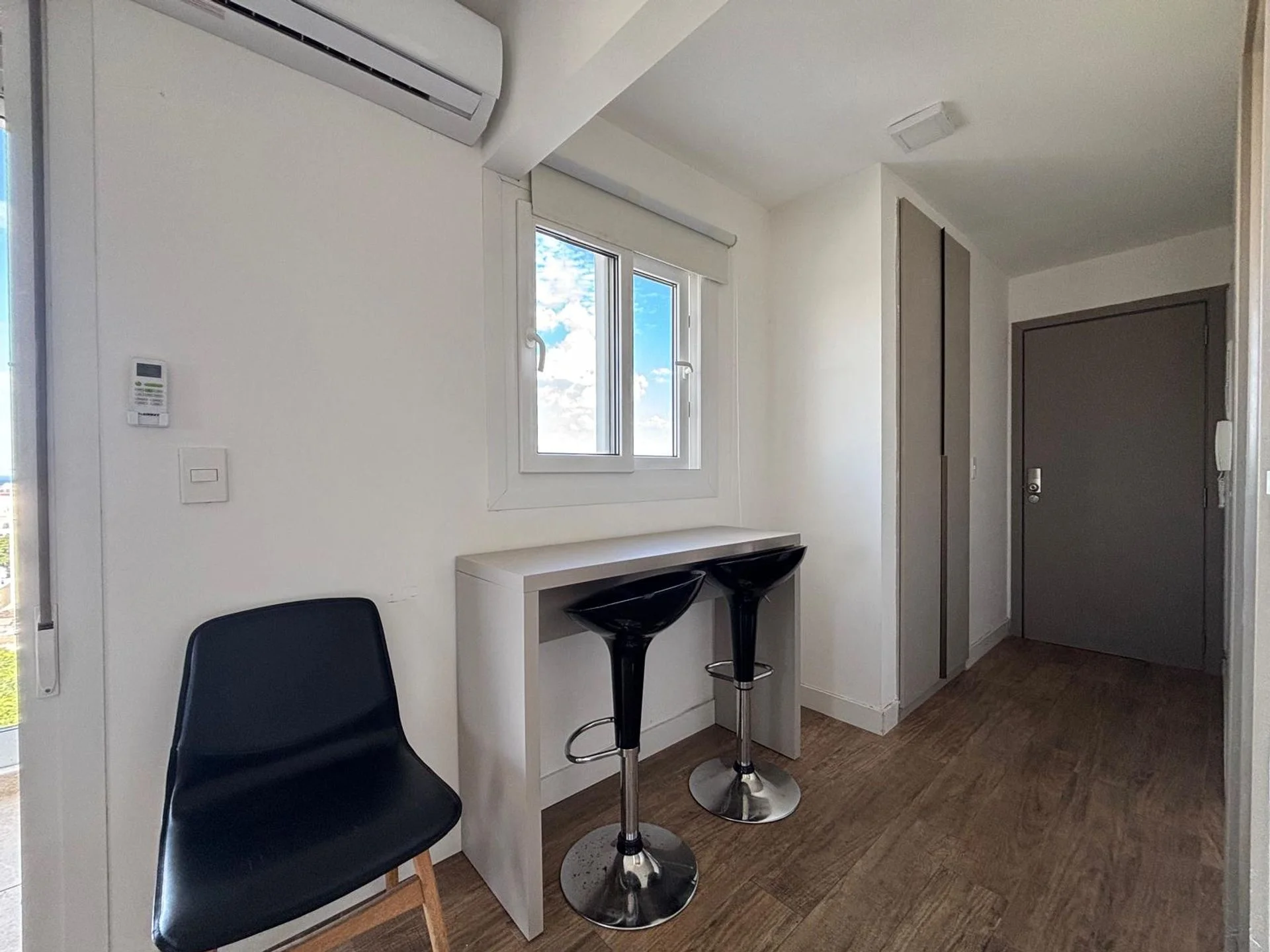Corredor Responsable: - Contacto: Sebastián Da Rosa Se trata de un apartamento ubicado en Solano Garcia casi Bulevar Artigas. El ambiente cuenta con aire acondicionado, escritorio, televisor, mesa de luz y una cómoda cama de dos plazas. La cocina esta integrada al ambiente cuenta con heladera, cocina, microondas jarra eléctrica y cafetera. El baño es de buenas dimensiones y se encuentra completo. Además la unidad cuenta con un comodo escritorio y recibidor al ingreso de la unidad. El alquiler incluye gastos comunes, luz (hasta USD50) wifi, limpieza de entrega y mobiliario completo tal cual las fotos. Cuenta con porteria virtual. Se trata de un apartamento totalmente moderno, comodo y muy acogedor. Honorarios inmobiliarios un mes de alquiler + IVA, o el 10% sobre el total del alquiler temporario. Cada Oficina es de propiedad, gestión y desarrollo independiente La presente publicación describe las características esenciales del inmueble, debiéndose consultar al responsable de la operación por la eventual actualización de las medidas, descripciones arquitectónicas y funcionales, servicios, impuestos, precios y demás información, cuyos valores son aproximados.