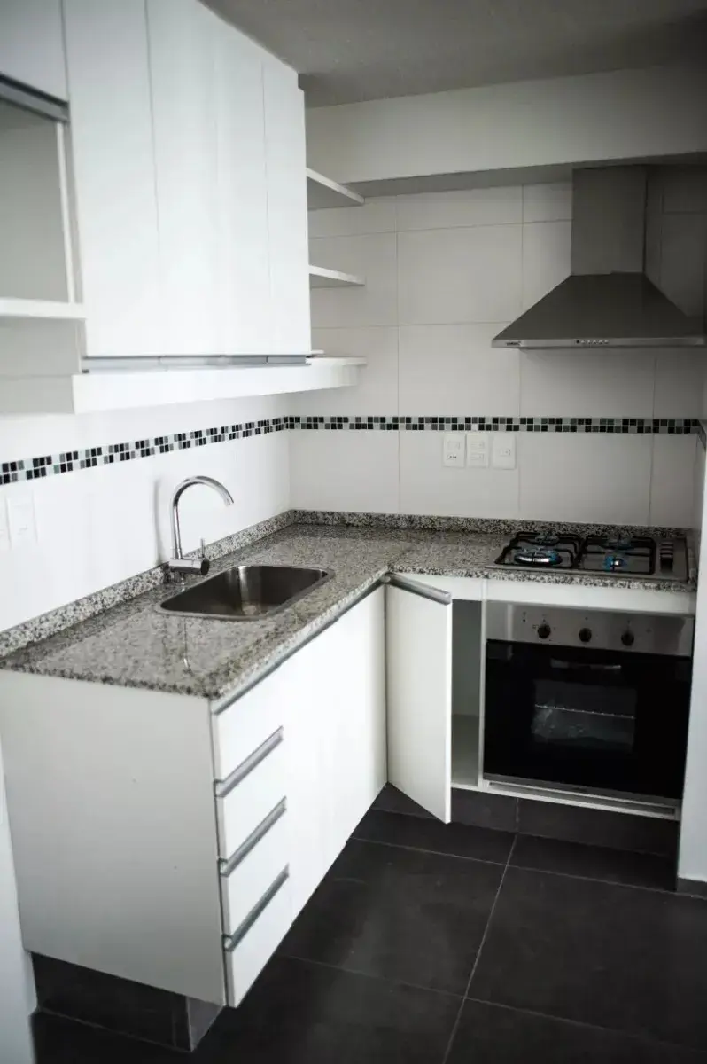 Cocina integrada con anafe, muebles aéreos y bajo mesada