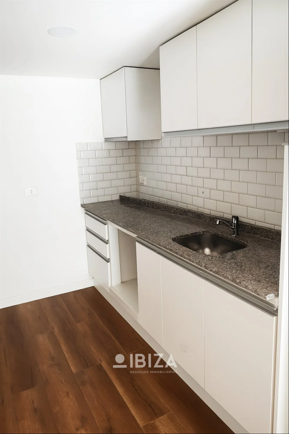 - Amplio living-comedor con cocina integrada equipada con horno, anafe y placares sobre y bajo mesada.