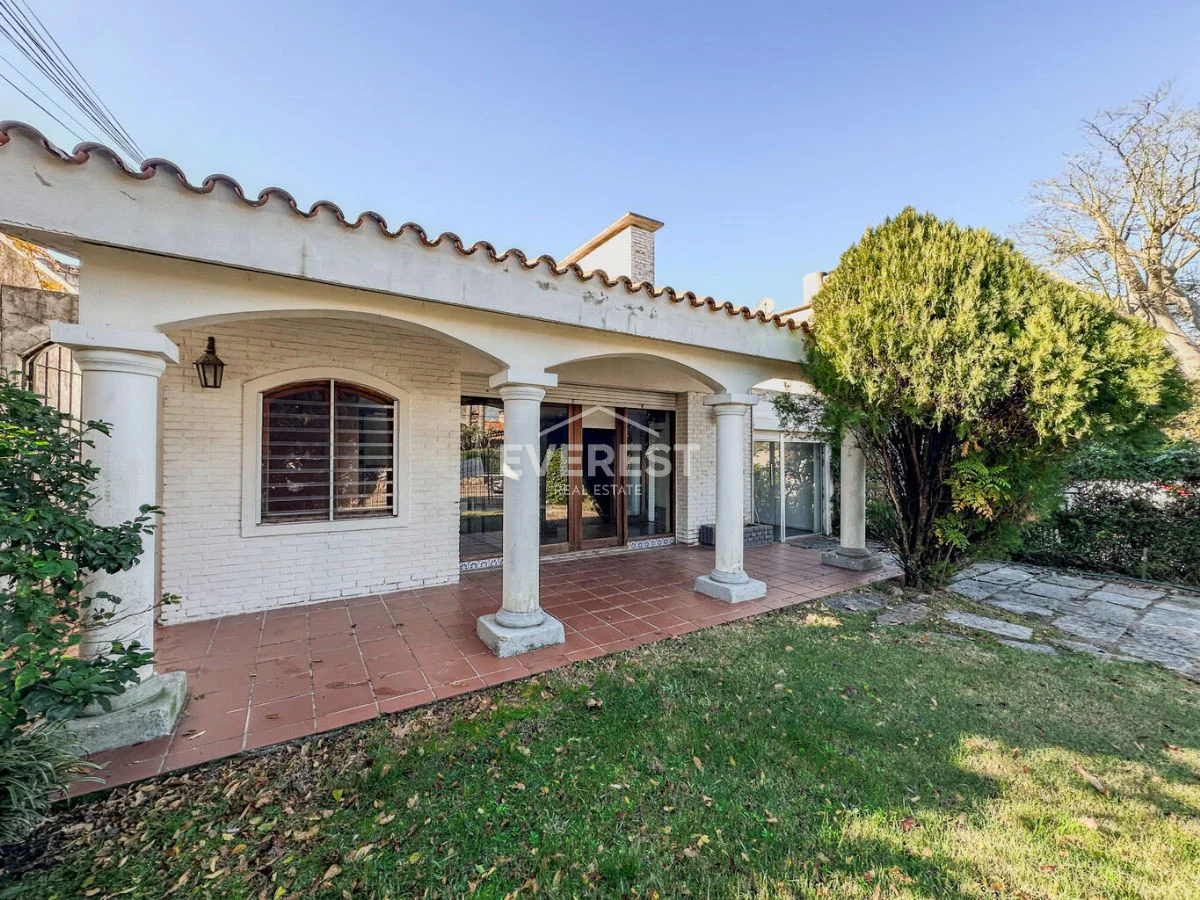 Además, dispone de un ambiente lateral (anteriormente usado como garaje), cocina con comedor, y tres espacios o dormitorios en planta baja, junto con dos baños.
