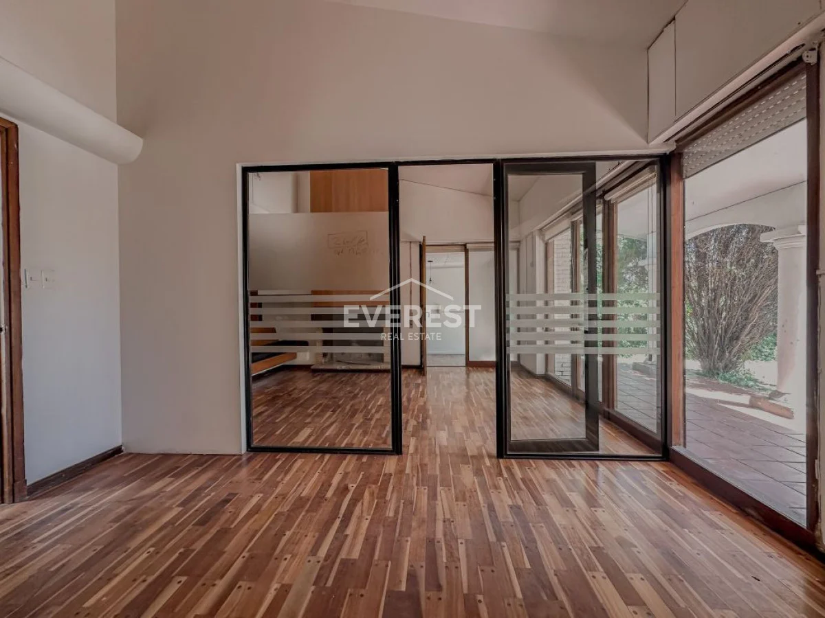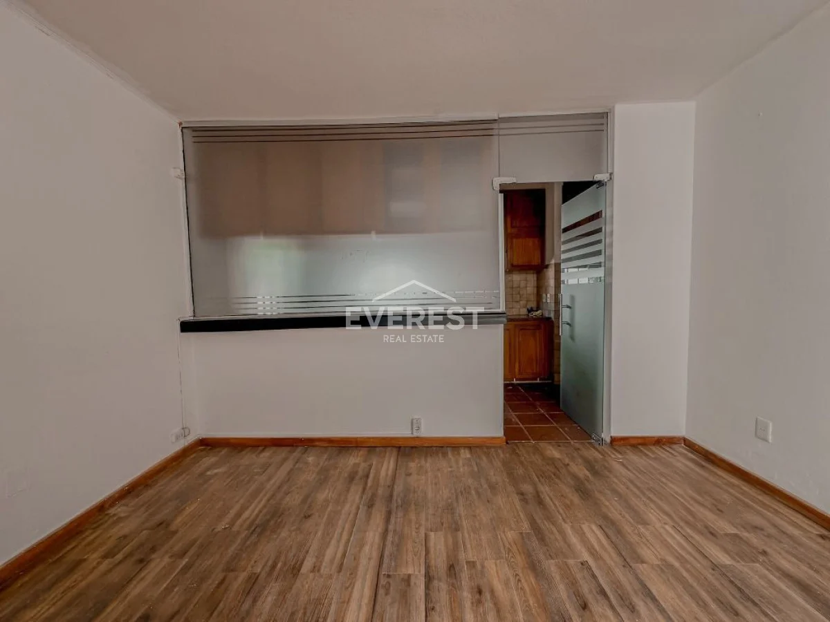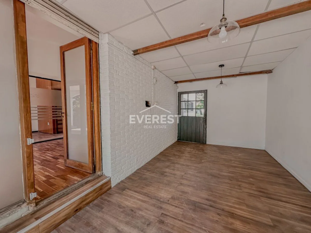 Cuenta con cochera para 1 o 2 autos, y un amplio ambiente principal actualmente dividido por una mampara de vidrio.