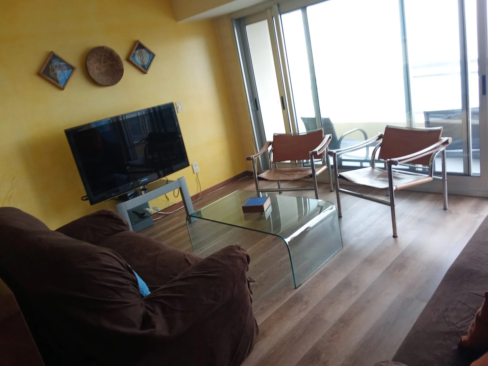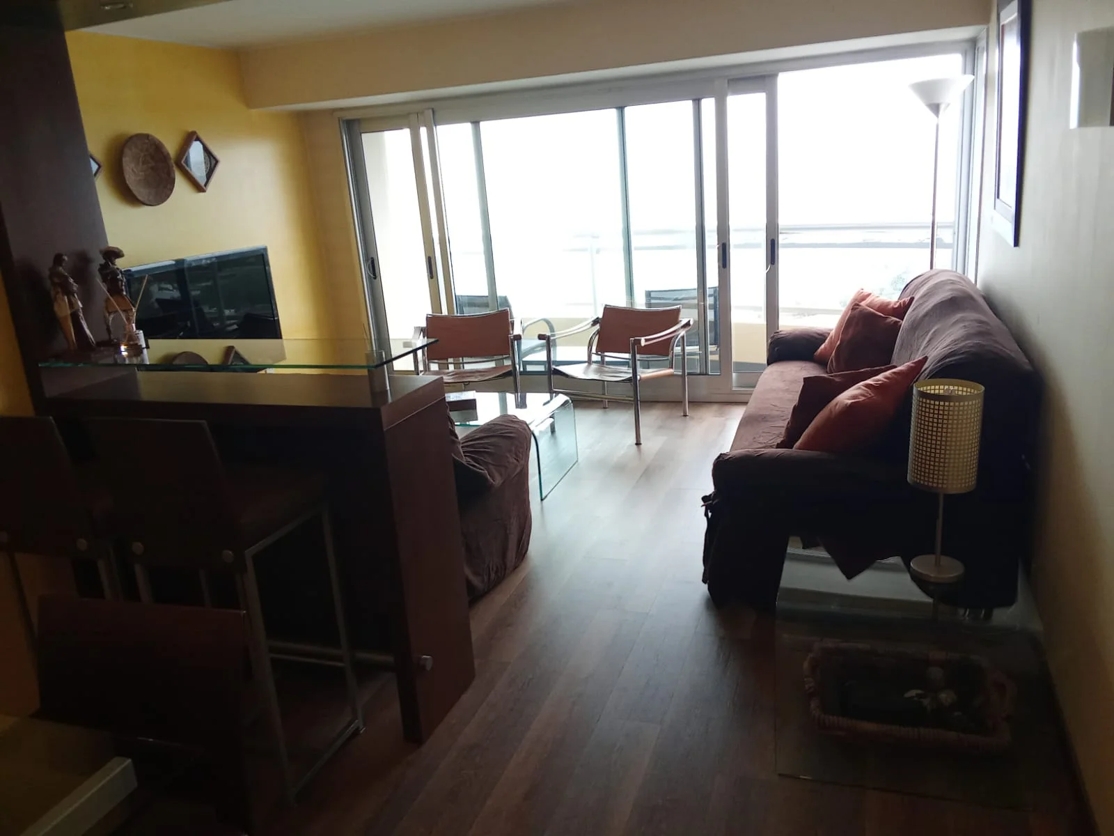 Living comedor integrados con salida al balcón (vista al puerto del Buceo)
