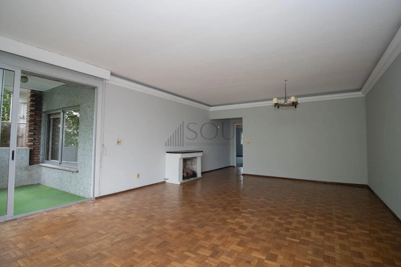 El living al frente dispone de estufa a gas, piso de parquet, vista despejada y salida a balcón.