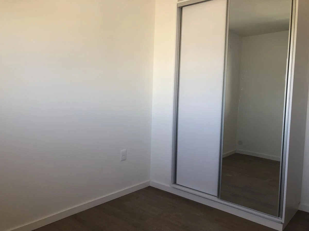 Dormitorio con placard, ventana con persiana.