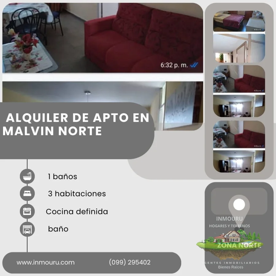 Alquilo Amplio Apto en Malvin Norte, ubicado en la calle INVE 16 Igua e Hipólito Yrigoyen, de 60m2 totales, con tres dormitorios grandes, living comedor con su ventanal al frente, cocina definida y baño amplio. No cuenta con lugar para auto.