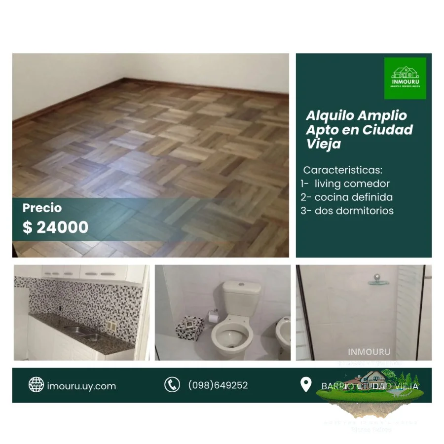 Alquilo Amplio Apto en la Ciudad Vieja, muy cerca de todo en la Calle Piedra, primer piso por escaleras, cuenta de dos dormitorios, living comedor amplio, cocina defina equipada, baño completo. Excelente zona para vivir. No acepta mascotas.