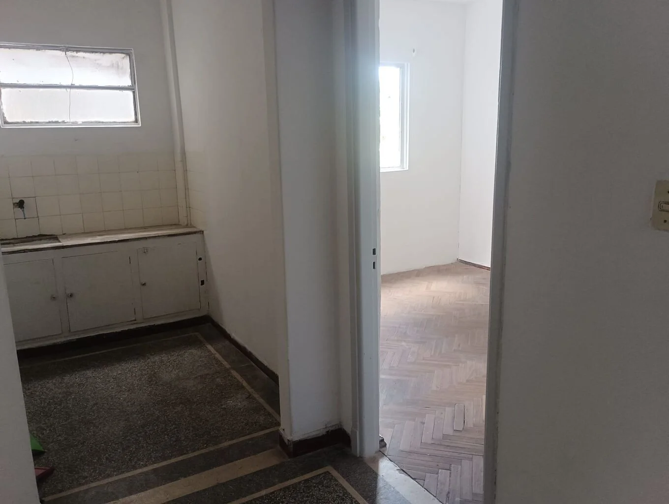 Primer piso por escalera interior luminoso, desarrolla living comedor, dos dormitorios (uno con placares), baño completo y cocina definida.