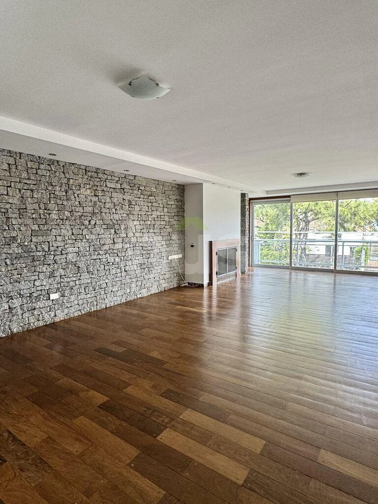 Amplio y elegante apartamento con pallier privado, entrada principal y servicio. Hall de distribución, amplio living con estufa, gran ventanal al frente y salida a balcón con pergola en madera. Cocina super amplia con lavadero y servicio completo. Estar independiente también con estufa, ventanal y balcón al fondo con parrillero y vistas a la piscina. Tres dormitorios (principal en suite con vestidor), los otros dos acceden a un baño en suite compartido con espacios compartimentados.
