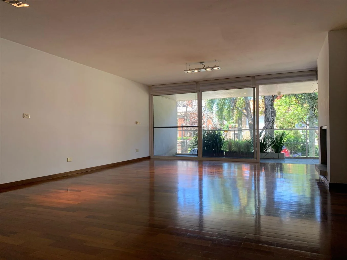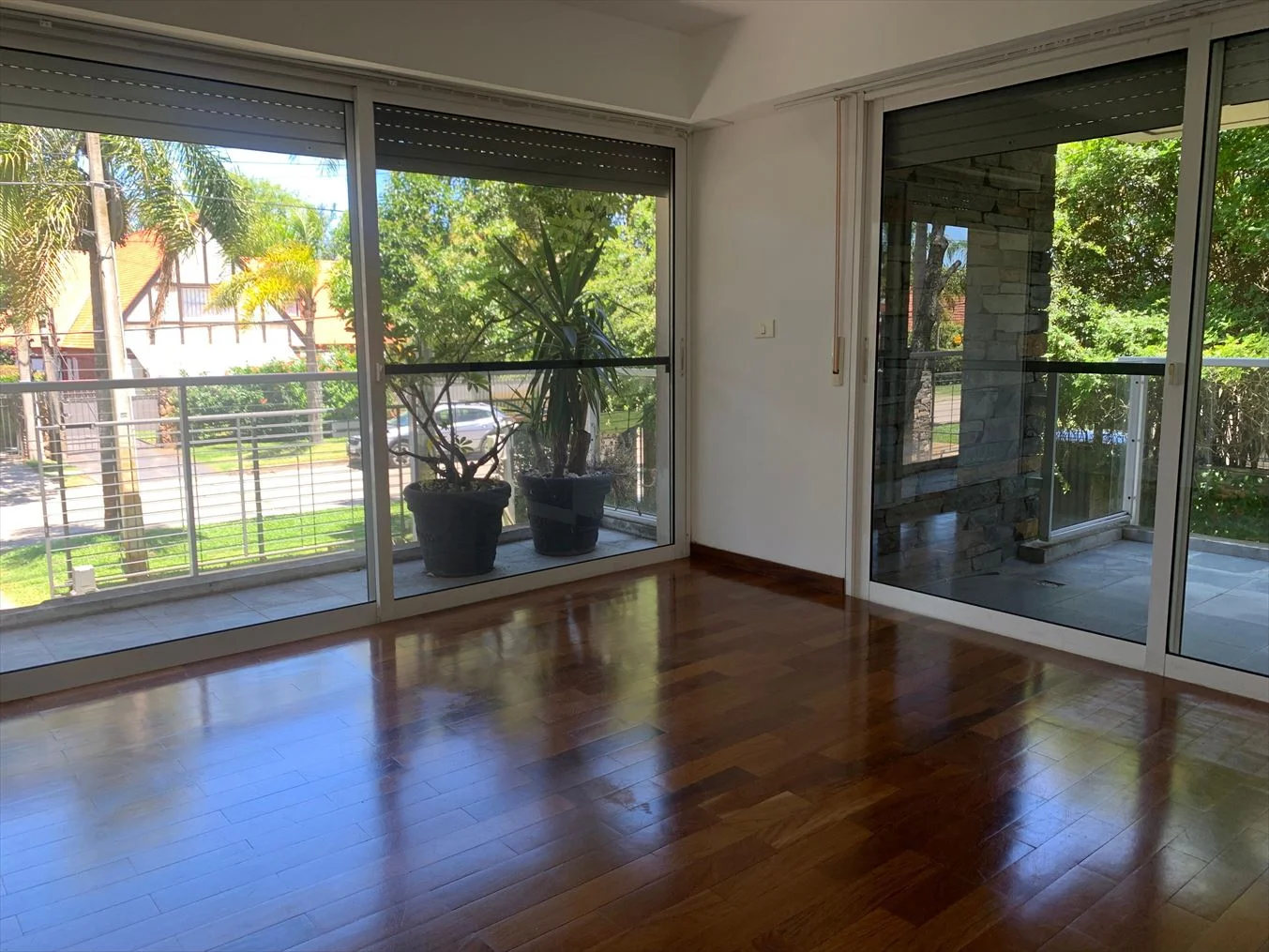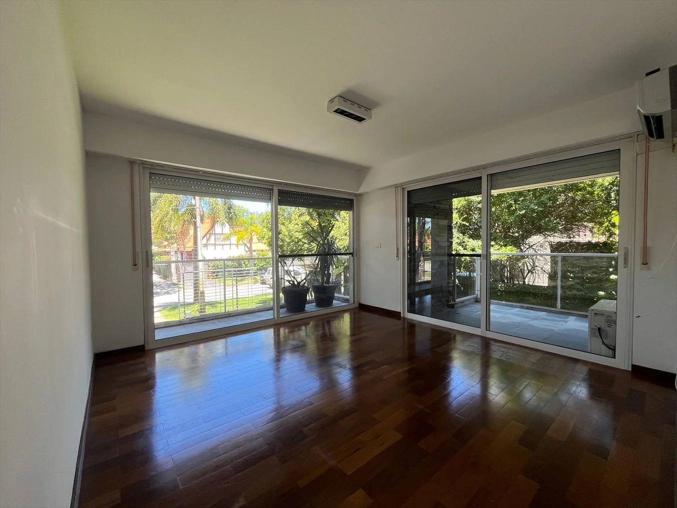 Living comedor amplio con piso de Parque, estufa a leña, salida a amplia terraza con parrillero.