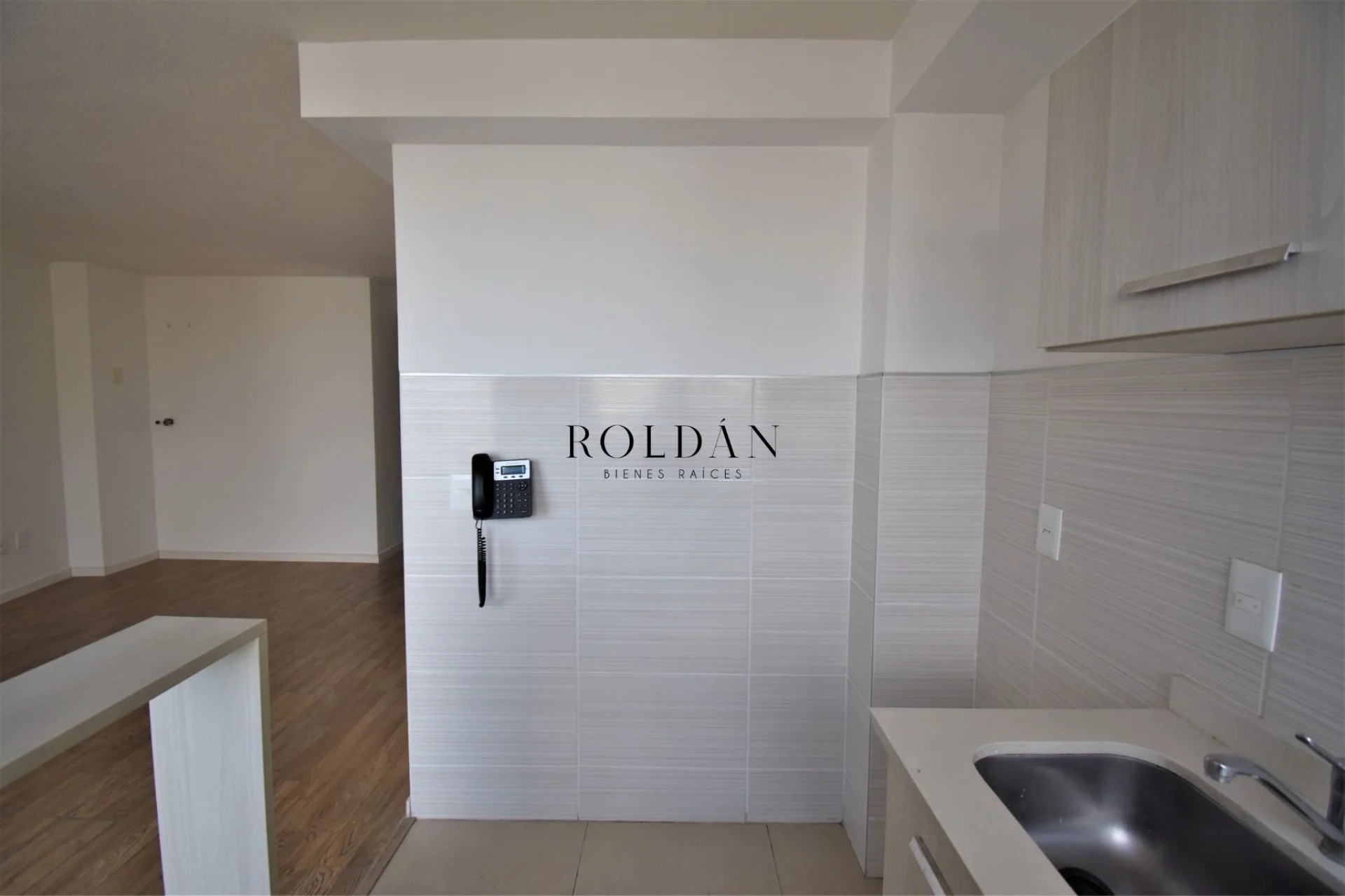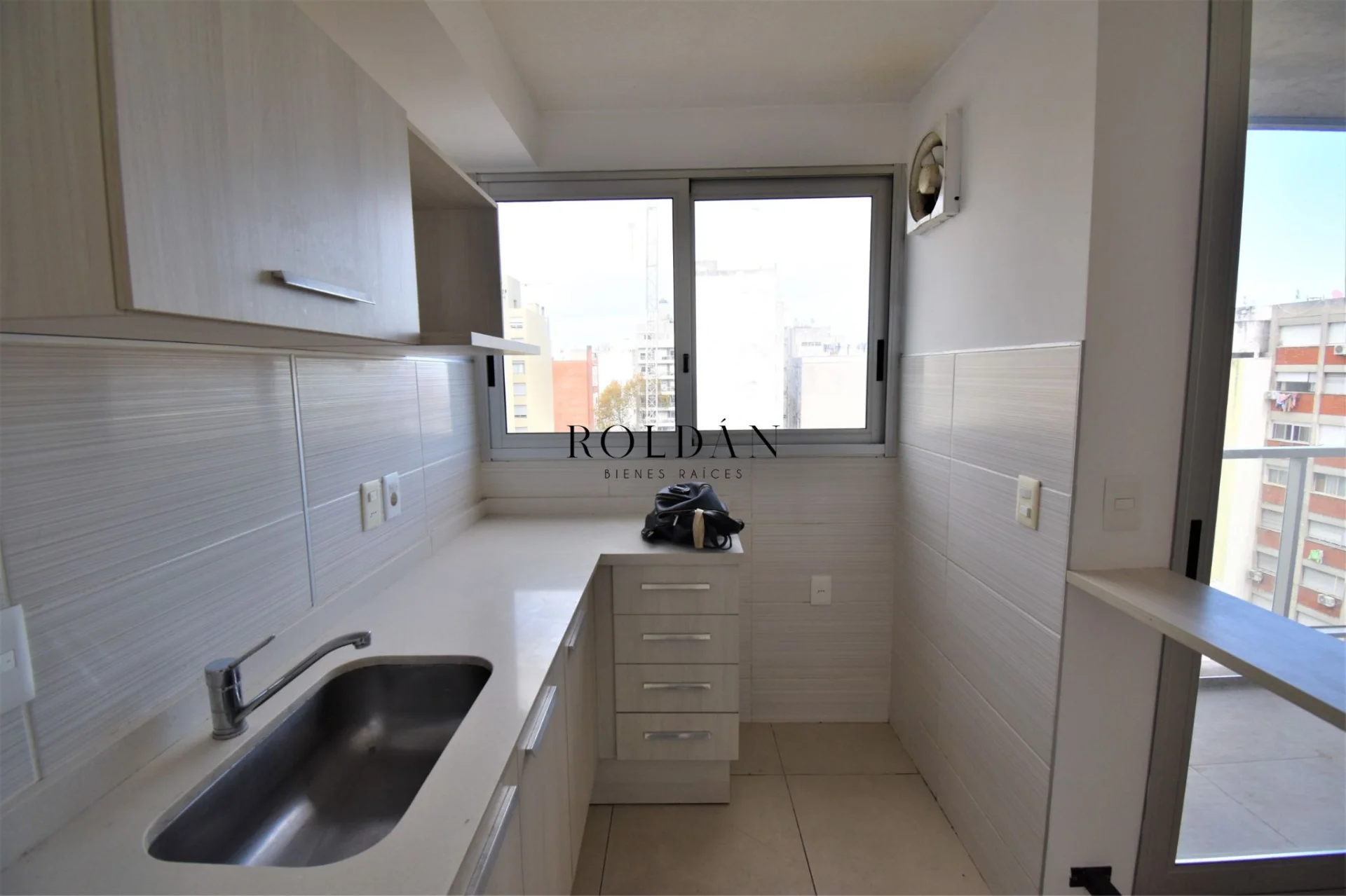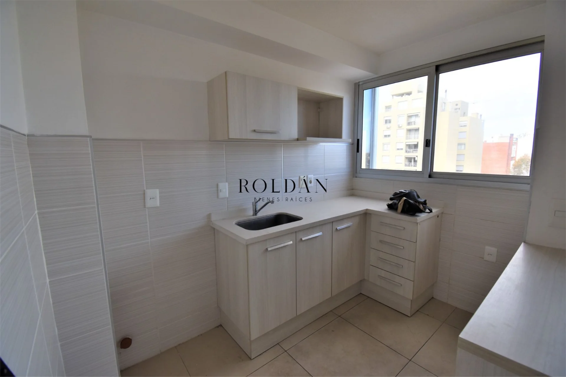 Living comedor al frente con puerta ventana que permite acceso a disfrutable terraza, cocina semi integrada con barra desayunador, muebles aéreos y bajo mesada, ventana y extractor de aire.