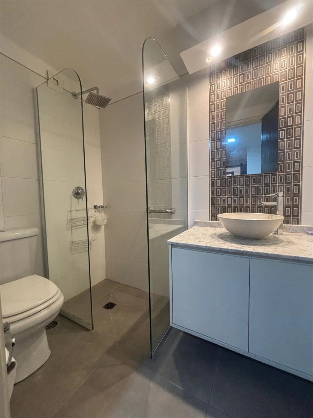 Gran living comedor, pisos de parquet, terraza cerrada, 3 dormitorios con placares (uno en suite), 2 baños, estar, amplia cocina con terraza lavadero, servicio completo, losa central. Dos Garajes independientes. Gastos Comunes $ 22.000.- Portería presencial de 8 a 23 y virtual las 24hs.